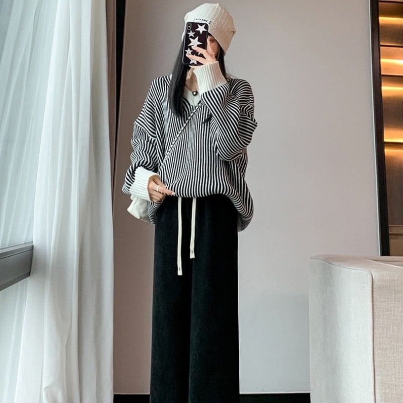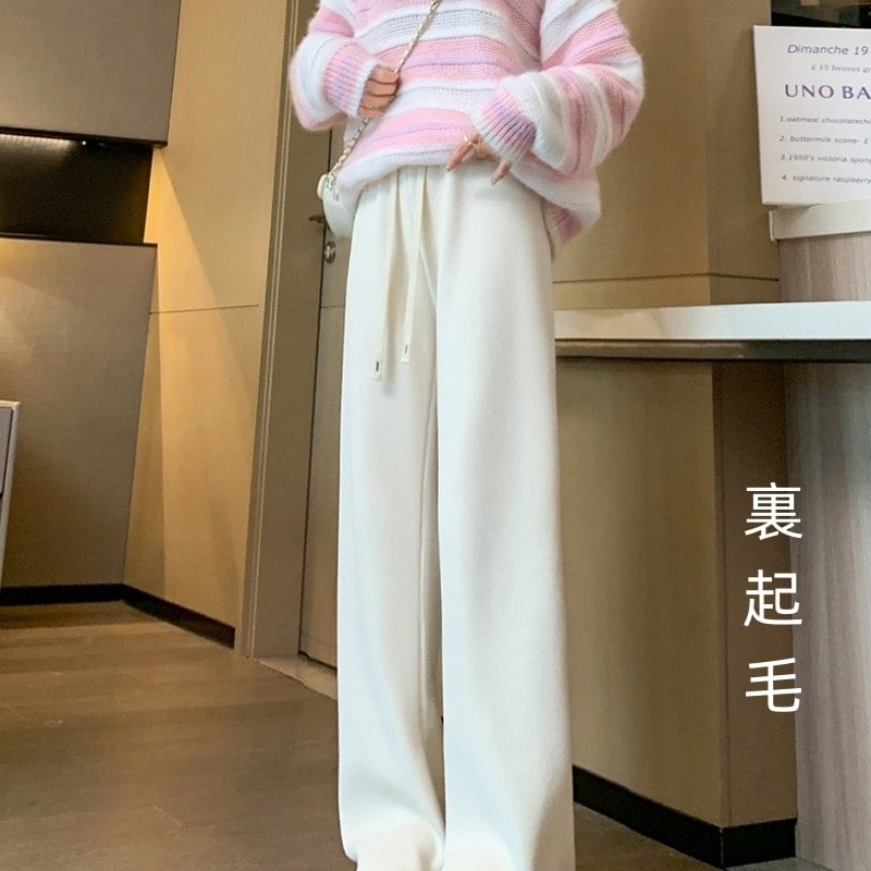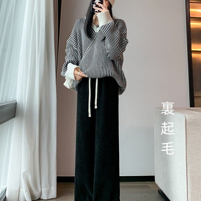 2025春 新作 カジュアル ファッション 引きずるパンツ ハイウエスト ゆったり ドレープ ストレート ズボン 裏起毛パンツ コーデュロイ ワイドパンツ レディース 2025ファッションパンツ 人気