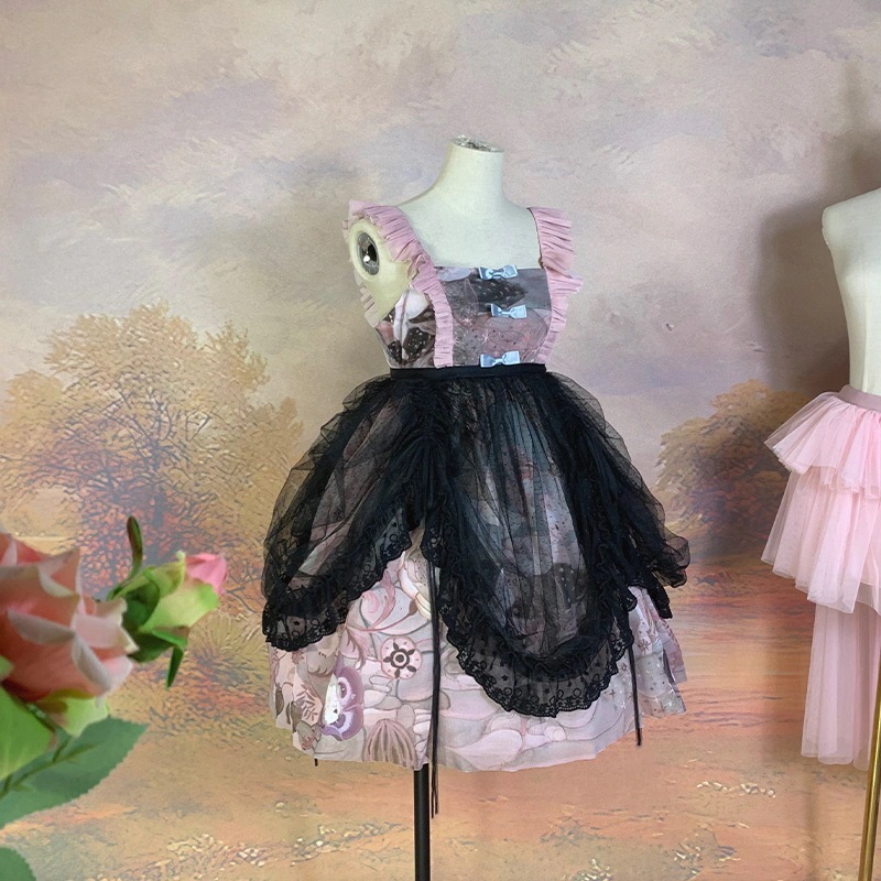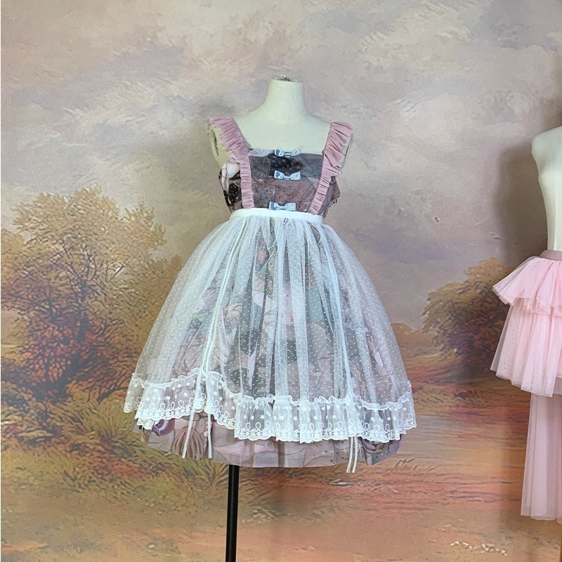 多彩なロリータ ロリータ シースルー ベール 着こなしいろいろ ドットガーゼレース巾着アップワンピース ロースカート