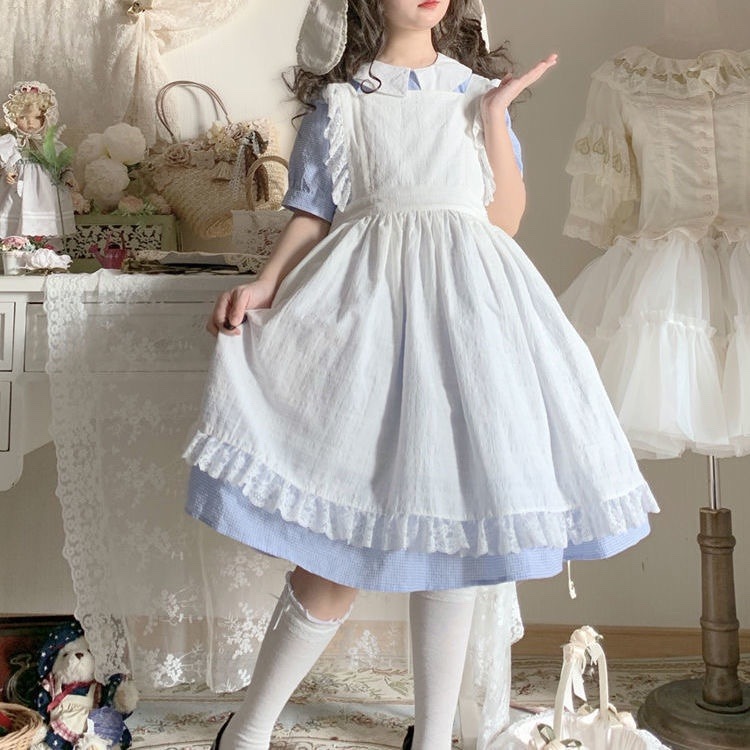 花咲ロリータ レースステッチ白アウターサスペンダースカート 女性用ロリータブラウス