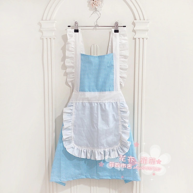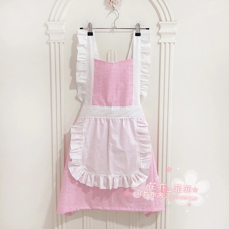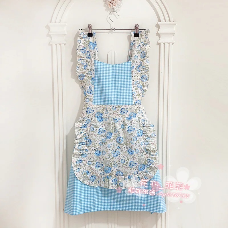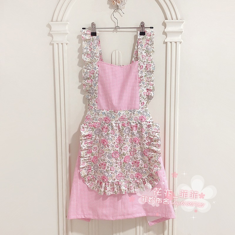 作業用エプロン おしゃれ 韓国風 女性 かわいい 和風 花柄 チェック柄 ホーム キッチン フラワー ショップ ミルクティー マニキュア 純綿エプロン
