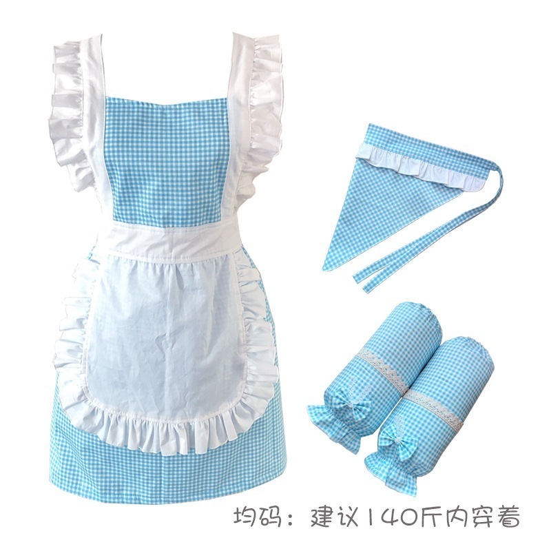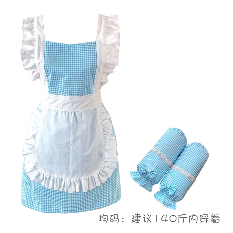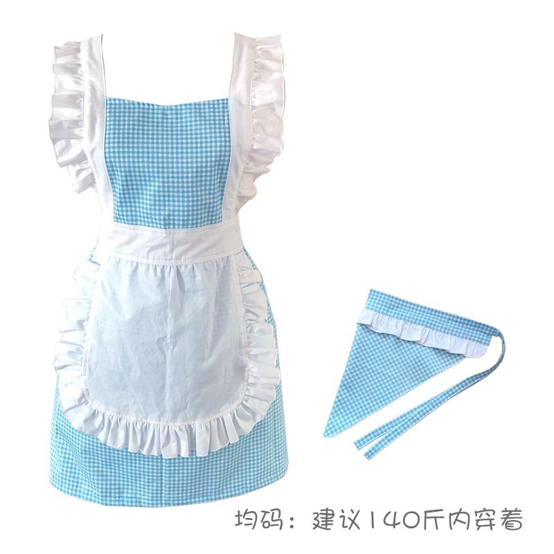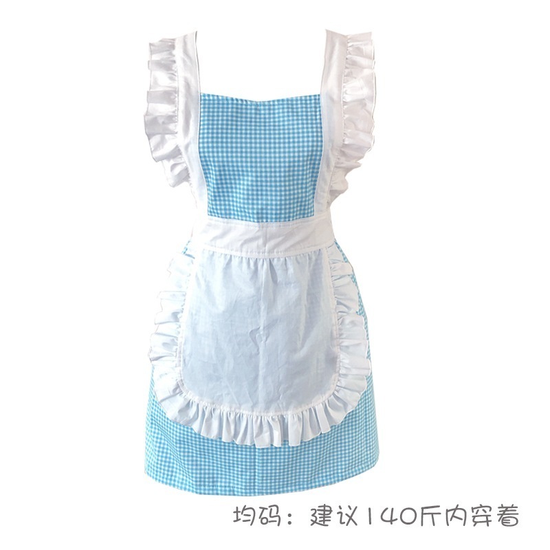 ワークエプロンおしゃれな韓国版女性用かわいい和風ブルーチェック綿ホームキッチンフラワーショップミルクティーマニキュアプラスサイズ