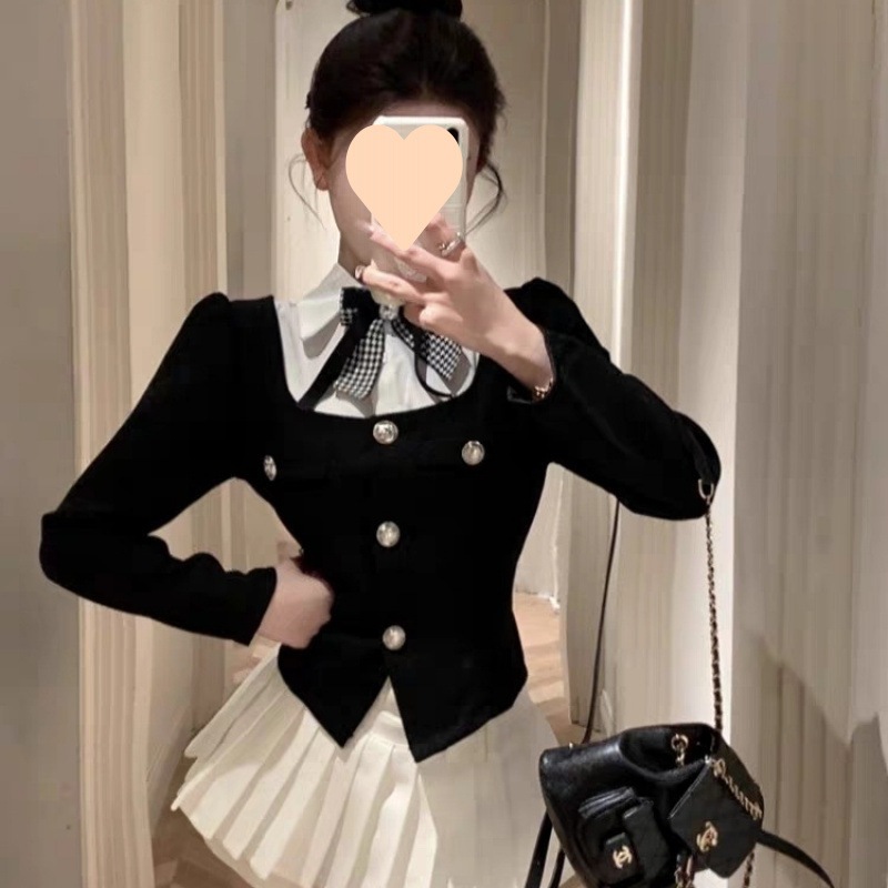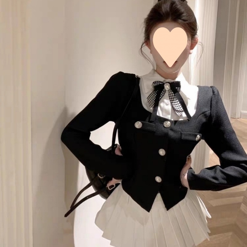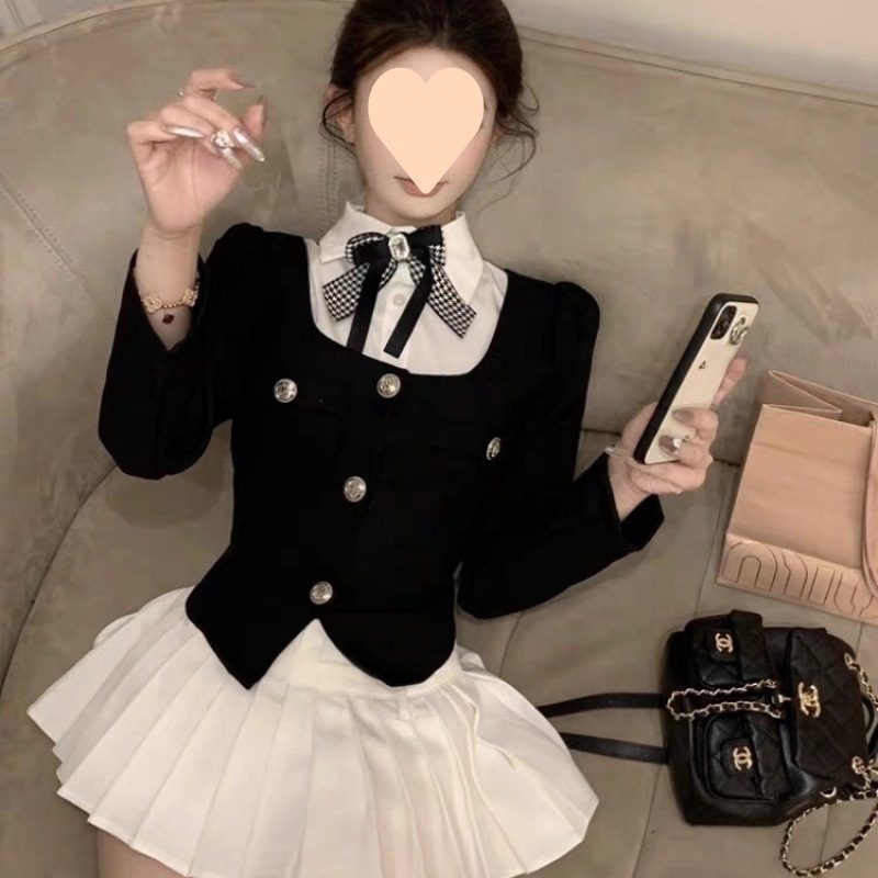 カレッジスタイルハイとスリムユニフォーム2ピュアティースタイルの甘い長袖レディーススーツ