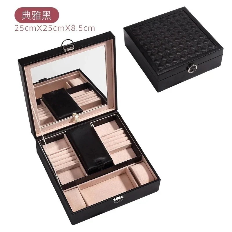 ウォッチジュエリーリップスティックコスメティックケース ミラー付きジュエリーオーガナイザー シンプルなフリップ蓋ジュエリー収納ボックス