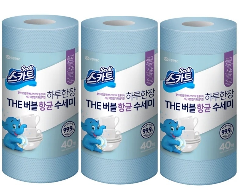 スコット一日一枚 THE バブル 抗菌 たわし 40枚 x 3個 (sky blue)
