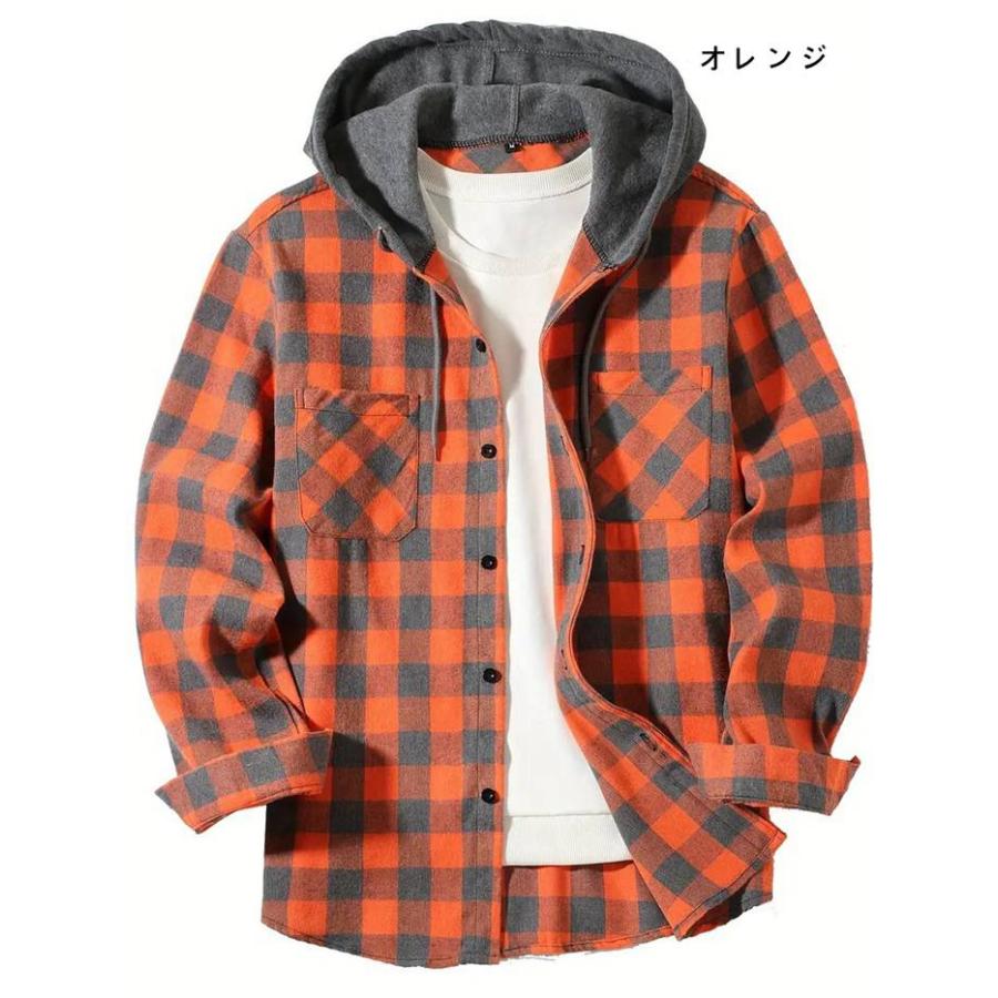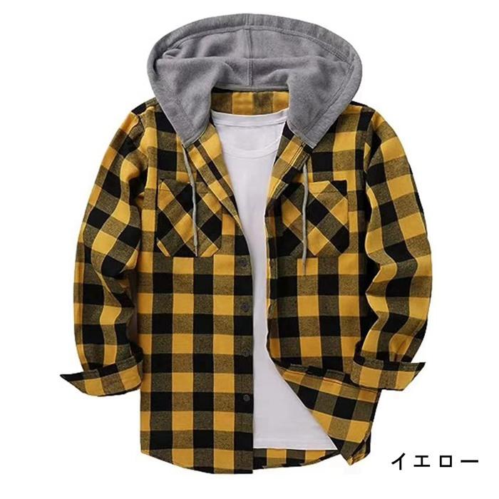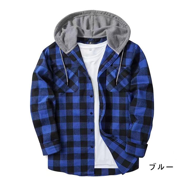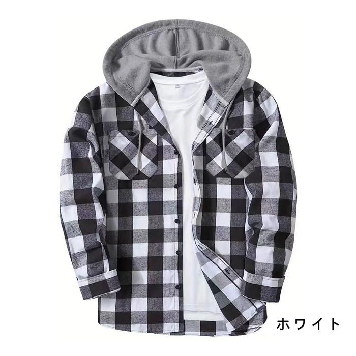 シャツ パーカー 長袖 シャツパーカー メンズ ネルシャツ フード付き チェックシャツ 上着 羽織 カジュアルシャツ