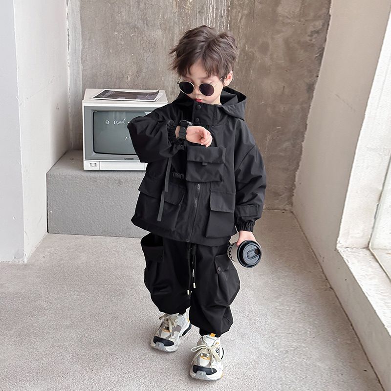 春秋新しい 男の子 フード付きアウター+カーゴパンツ 2点セット キッズ ファッション カジュアル 上下セット 子供服 セットアップ