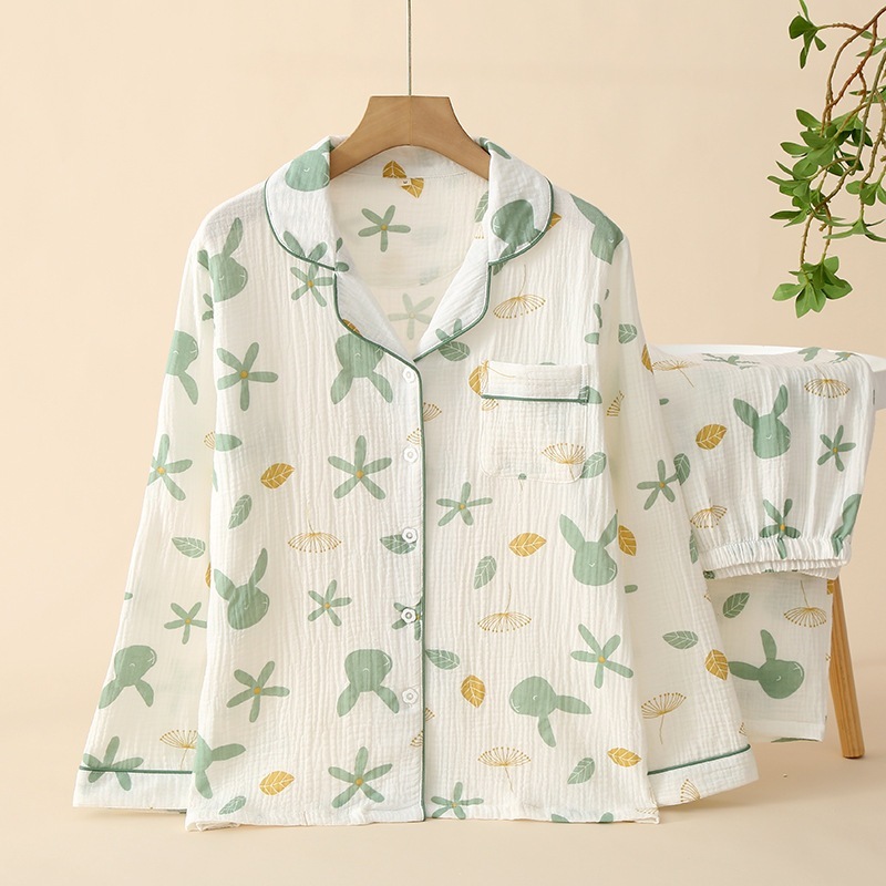 【かわいいウサギ】純綿女子二重ガーゼパジャマ長袖長ズボン部屋着春秋レディース2点セット
