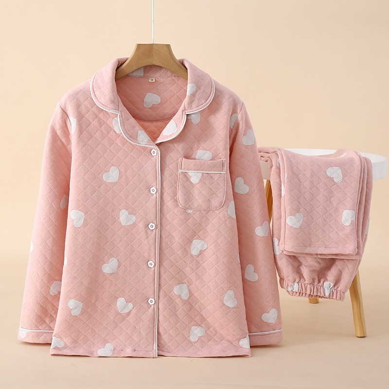 秋冬パジャマレディース開襟メザニン部屋着冬の部屋着カーディガンスーツエアコットン外着可能