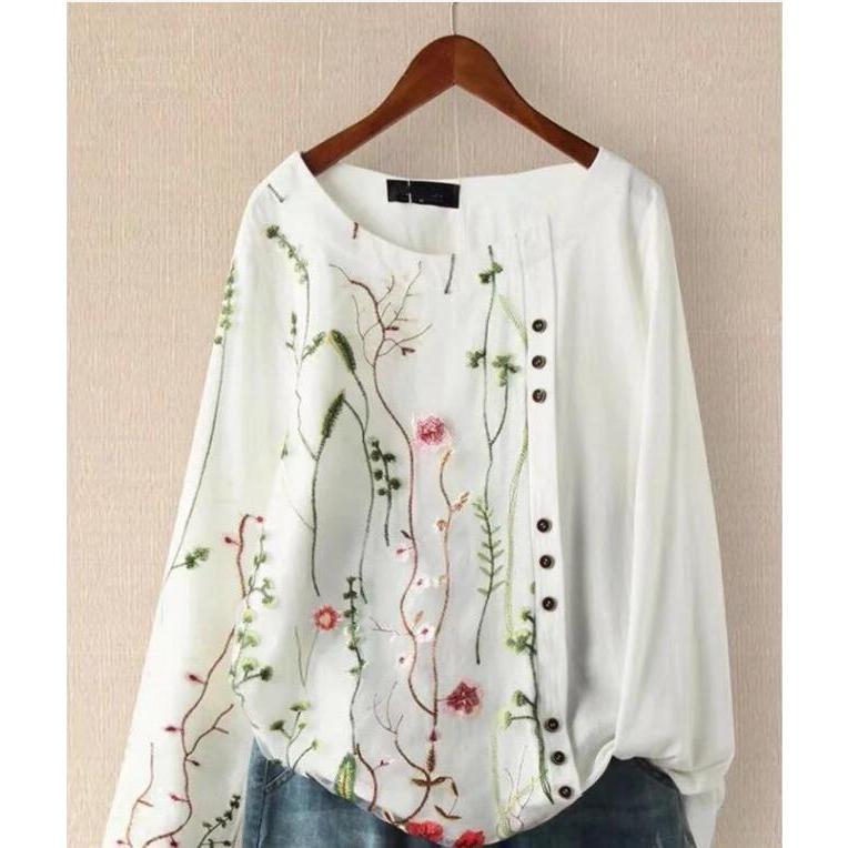 Tシャツ ブラウス トップス レディース 長袖 綿麻 花柄 大きいサイズ チュニック 体型カバー ゆったり