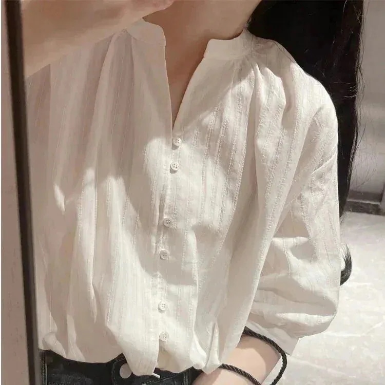今っぽシアーシャツ 綿麻半袖シャツ夏カジュアルリネンシャツ五分袖トップス 韓国 ブラウス レディースファッション オフィス シャツ
