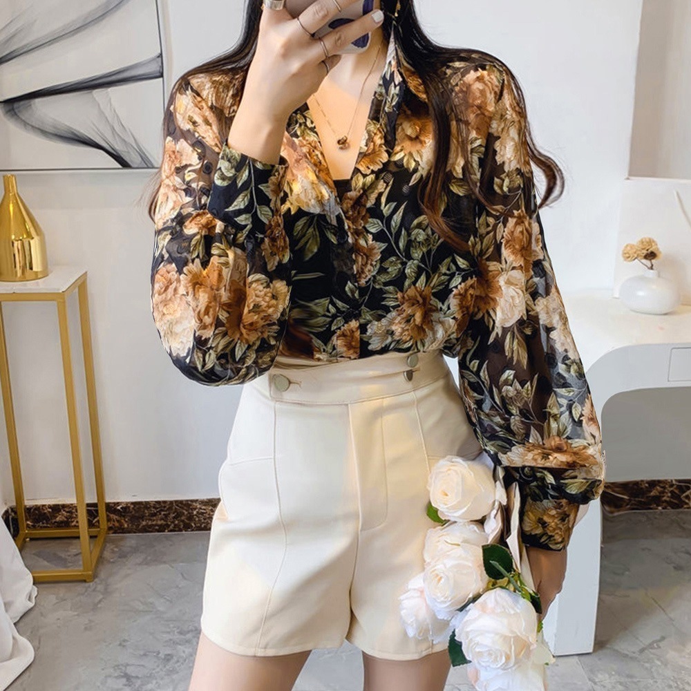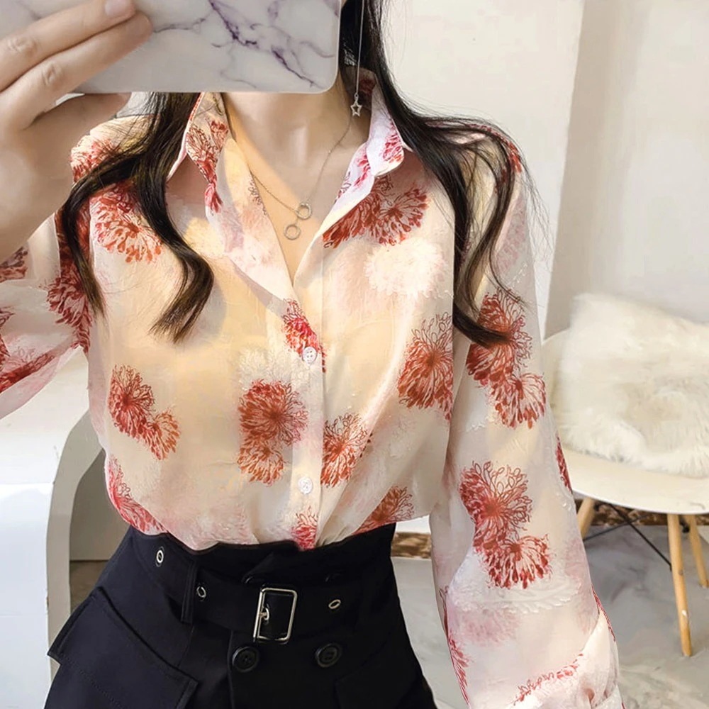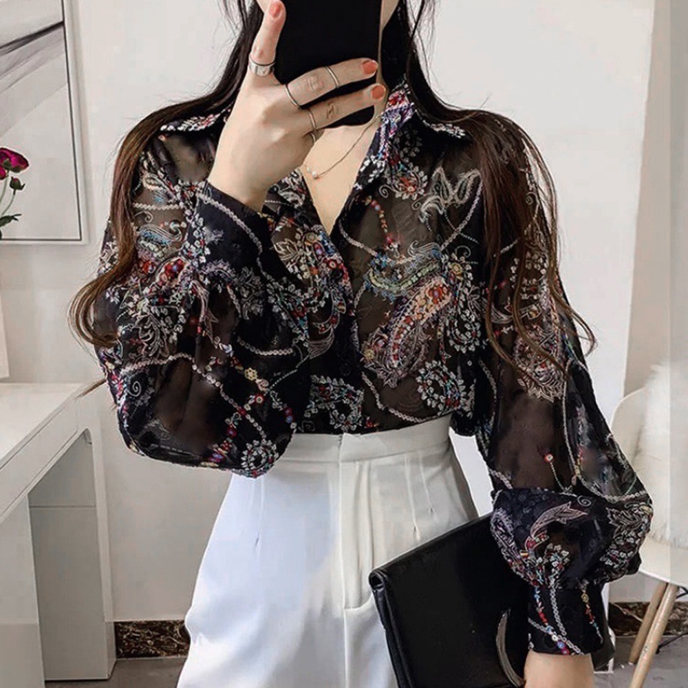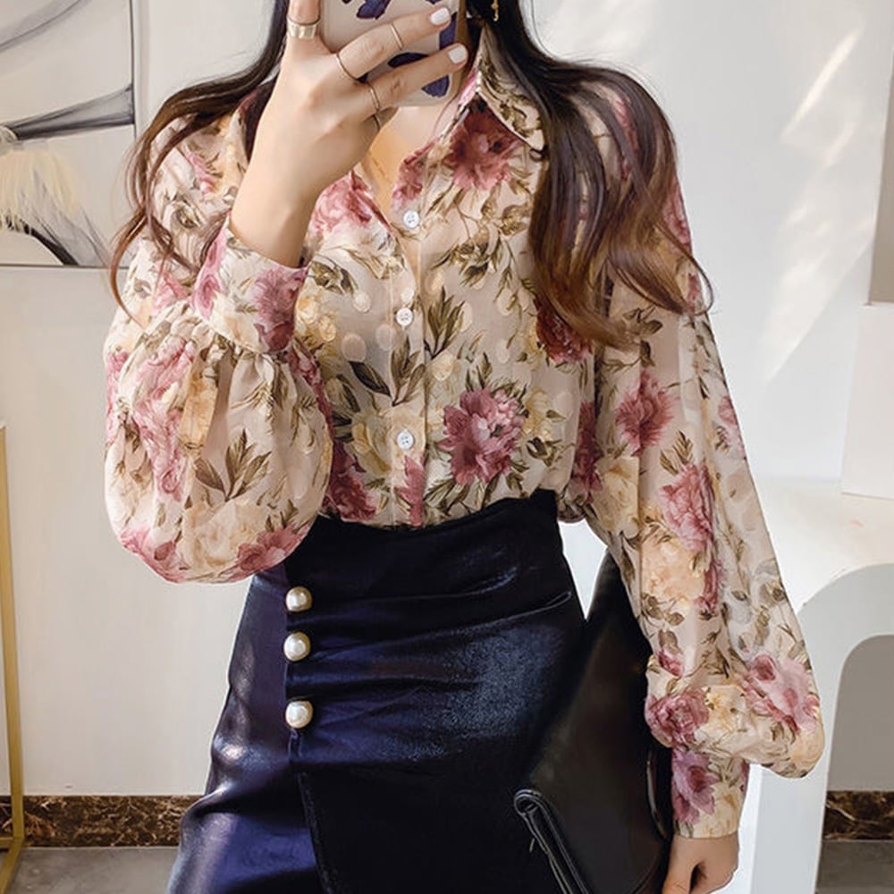 シャツブラウス 花柄 シアーブラウス長袖 レディースファッション