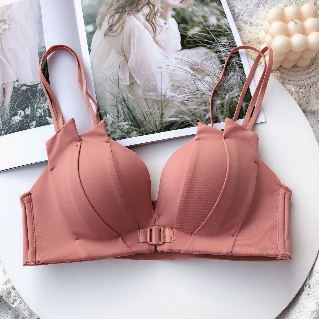 前ホック ストラップ ギャザリング 薄手カップ 軽薄 ストラップ ブラジャー ナイトブラ育乳 ナイトブラ 韓人気ファッション