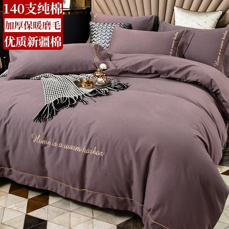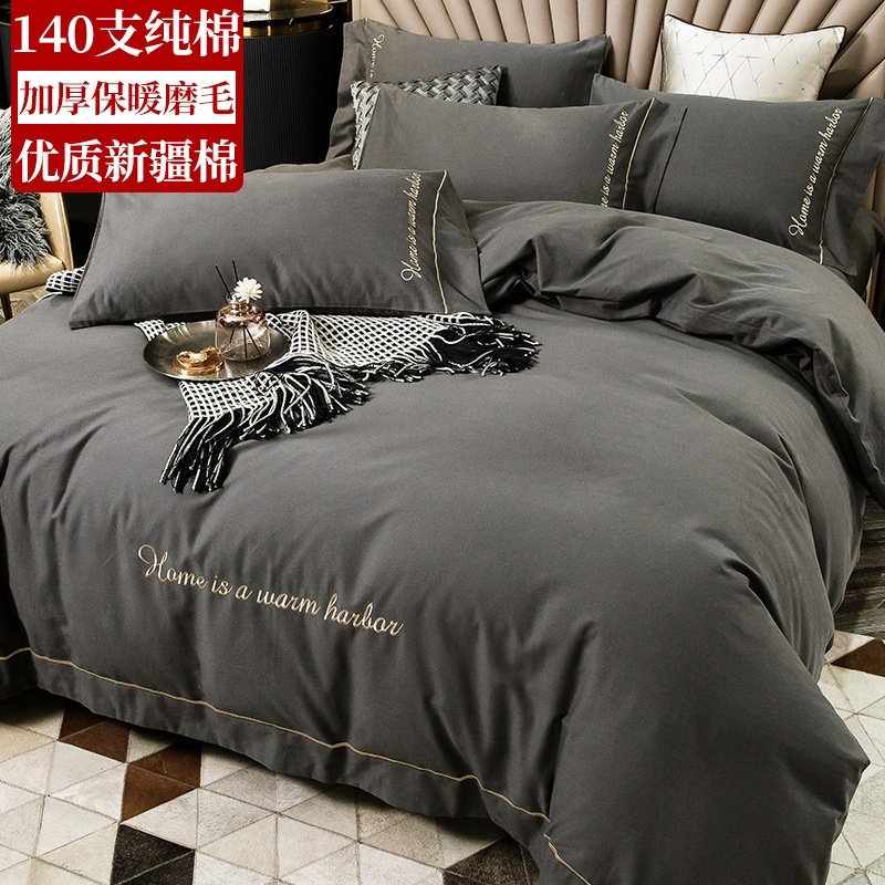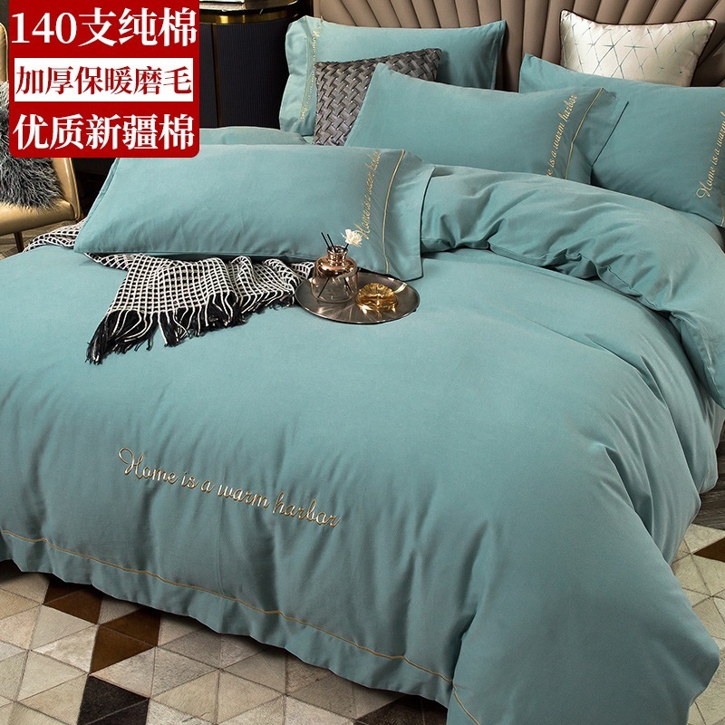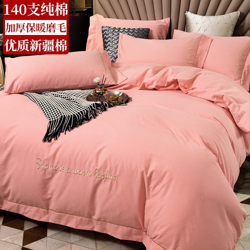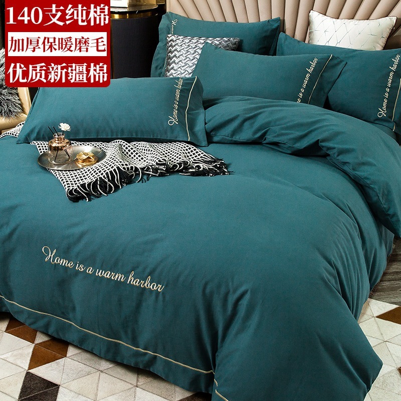 秋と冬に厚くした綿磨き4点セット綿100シーツ布団カバー軽贅沢裸寝具