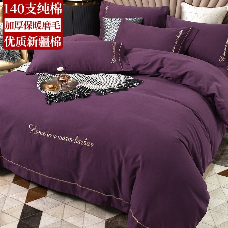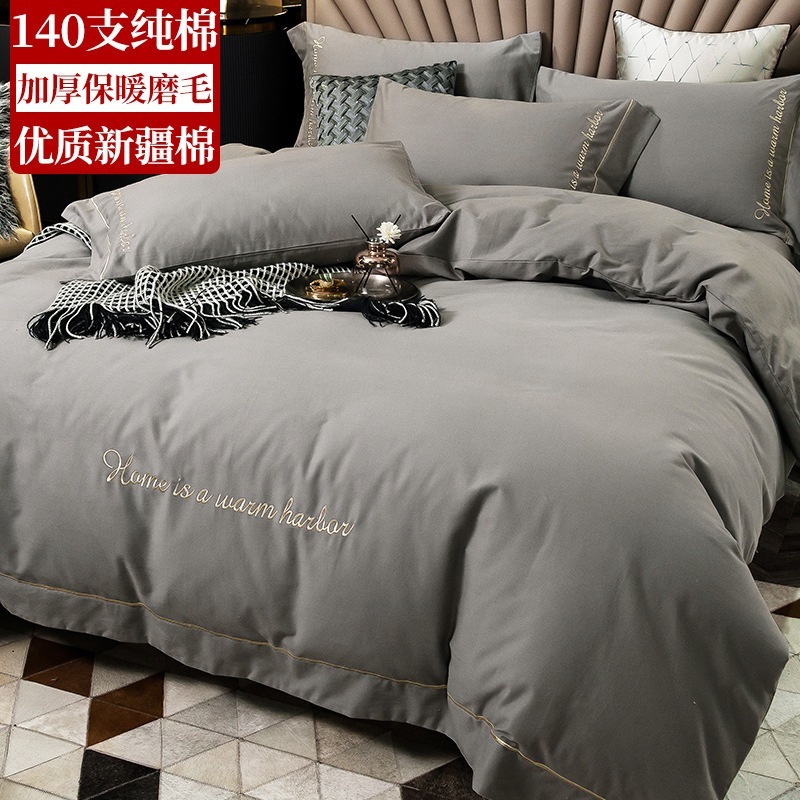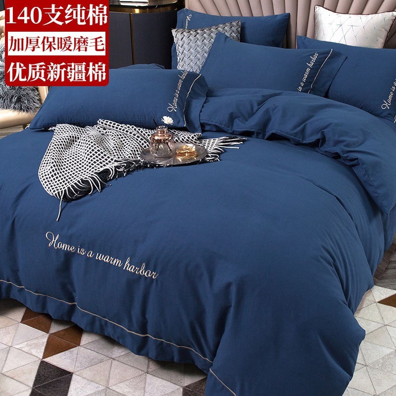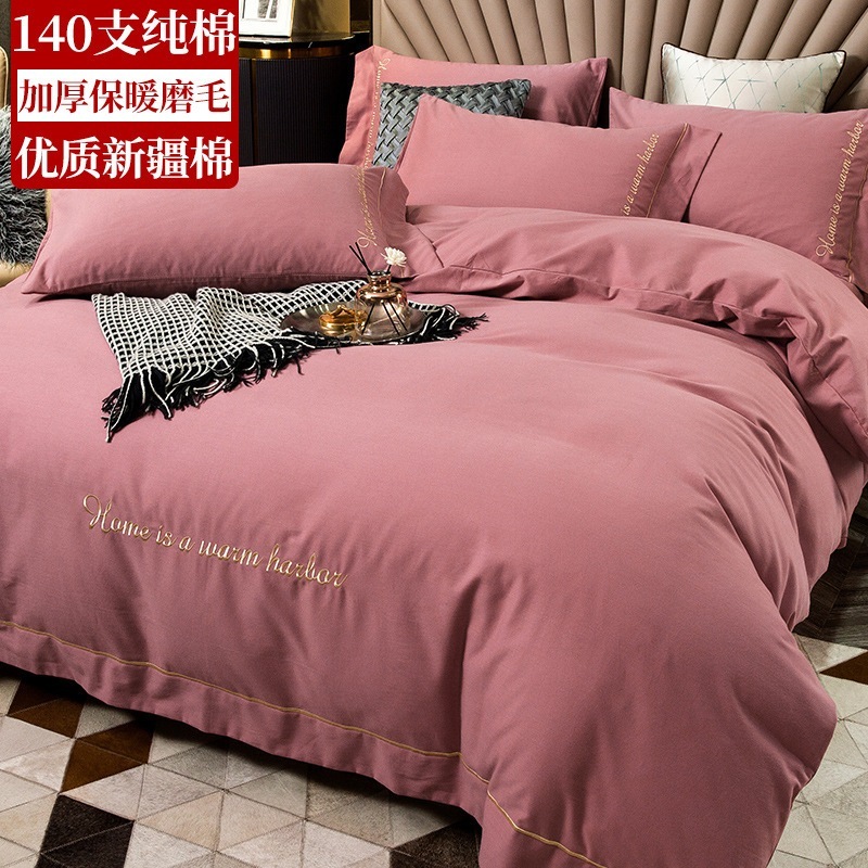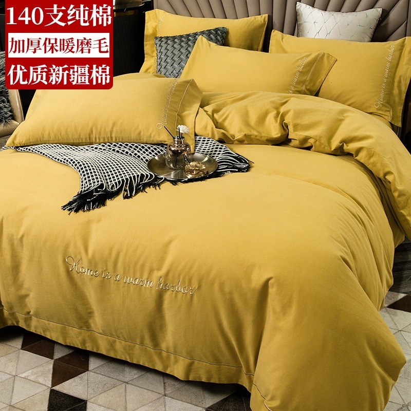 秋と冬に厚くした綿磨き4点セット綿100シーツ布団カバー軽贅沢裸寝具