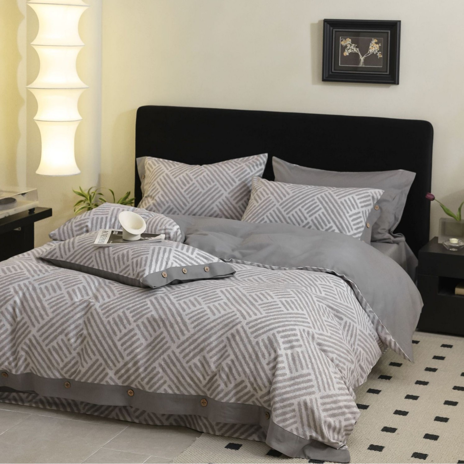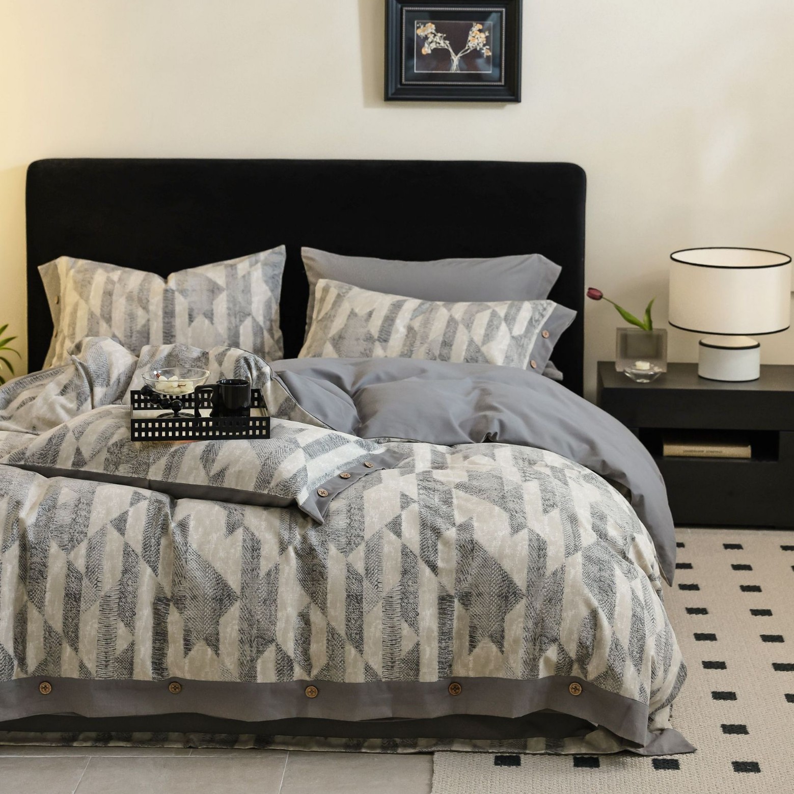 厚手の磨き毛ボタン4点セットコットンコットンシーツ布団カバーレトロアメリカン高級感ベッド