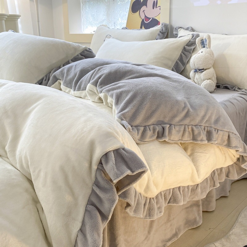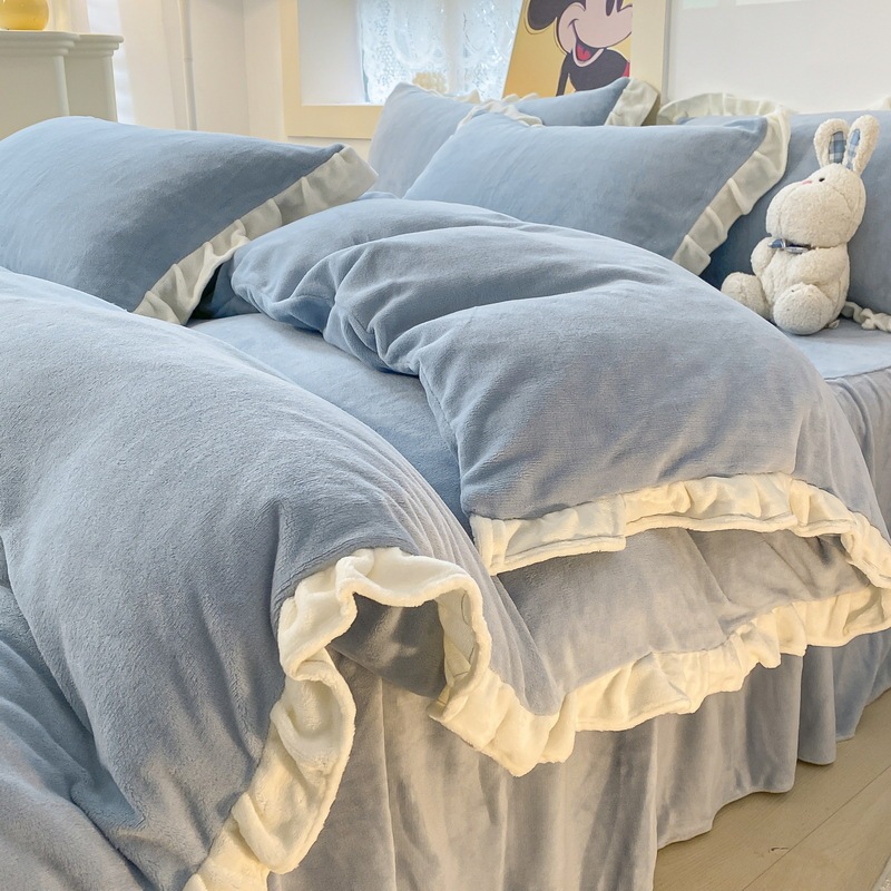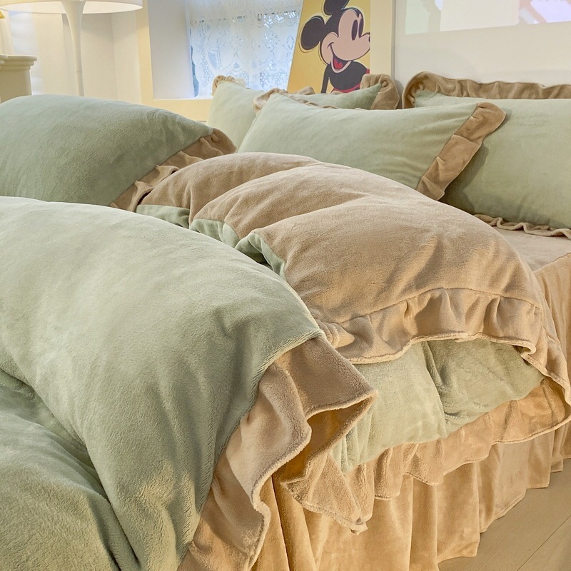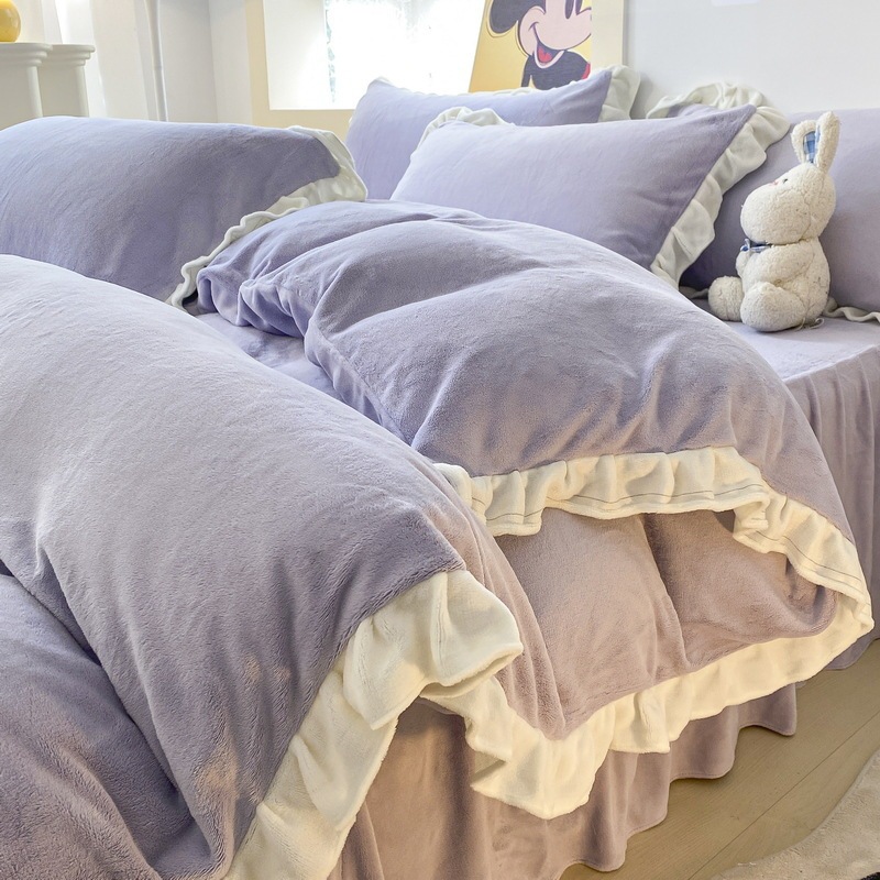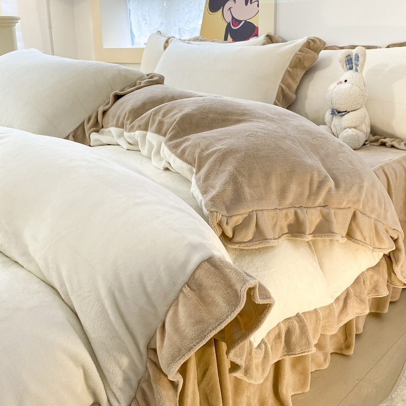 ミルクベッドの上の4つの冬の厚い珊瑚絨毯シーツカバーレースフランネル布団カバー加絨床品