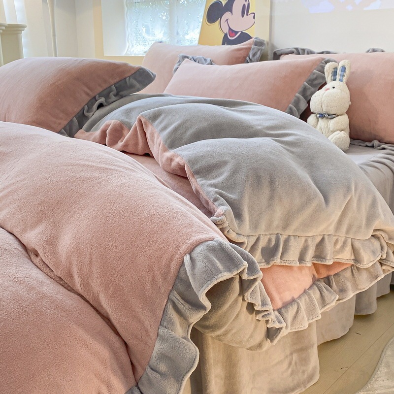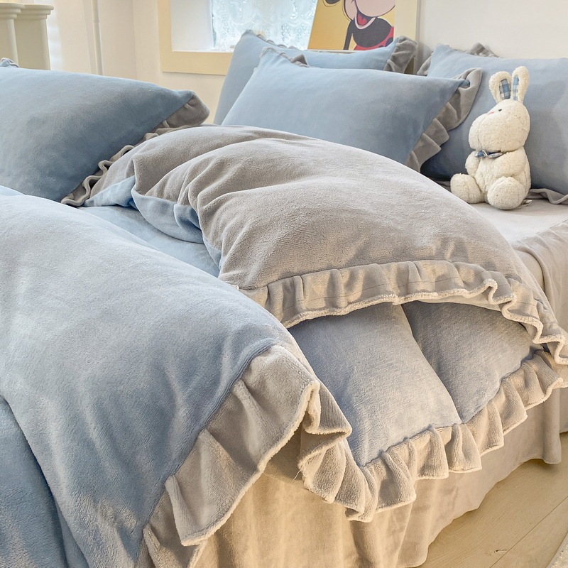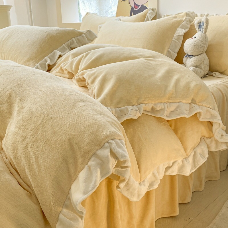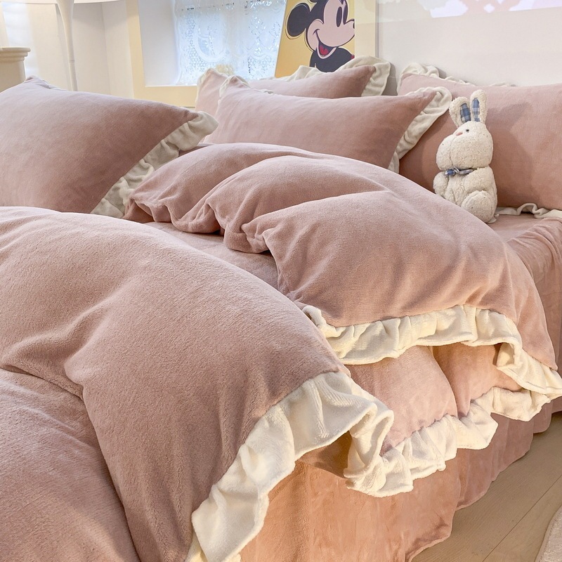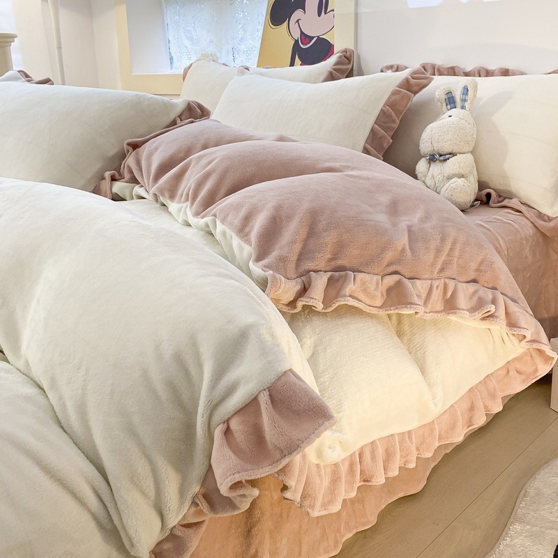 ミルクベッドの上の4つの冬の厚い珊瑚絨毯シーツカバーレースフランネル布団カバー加絨床品
