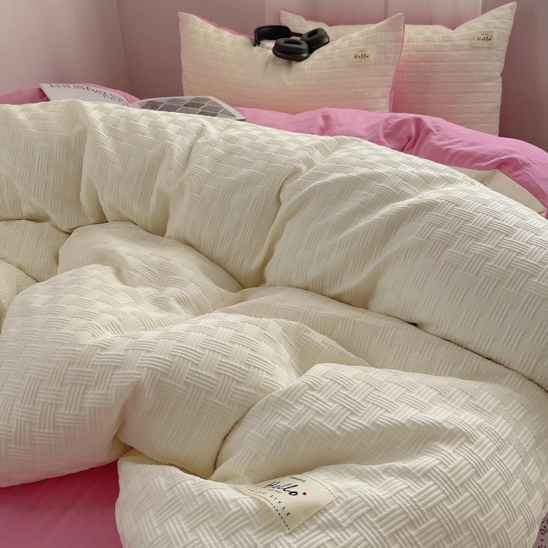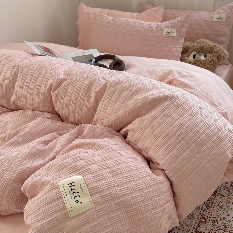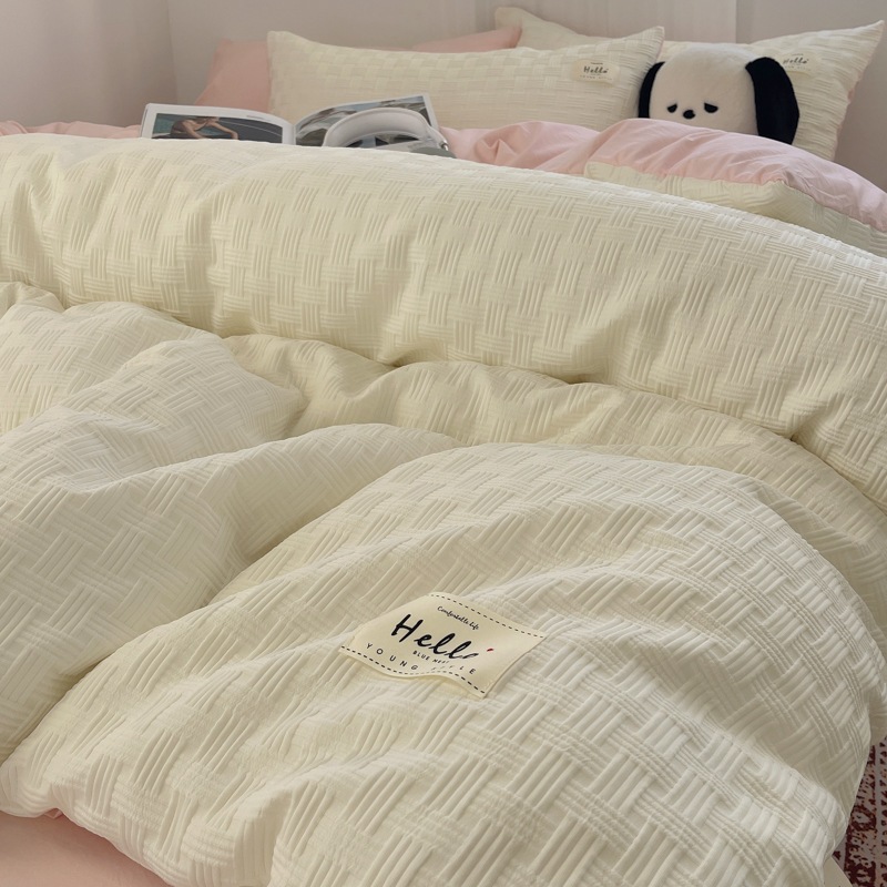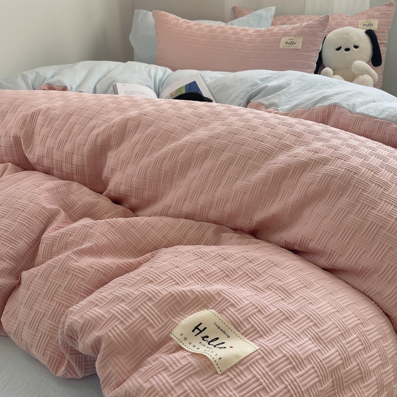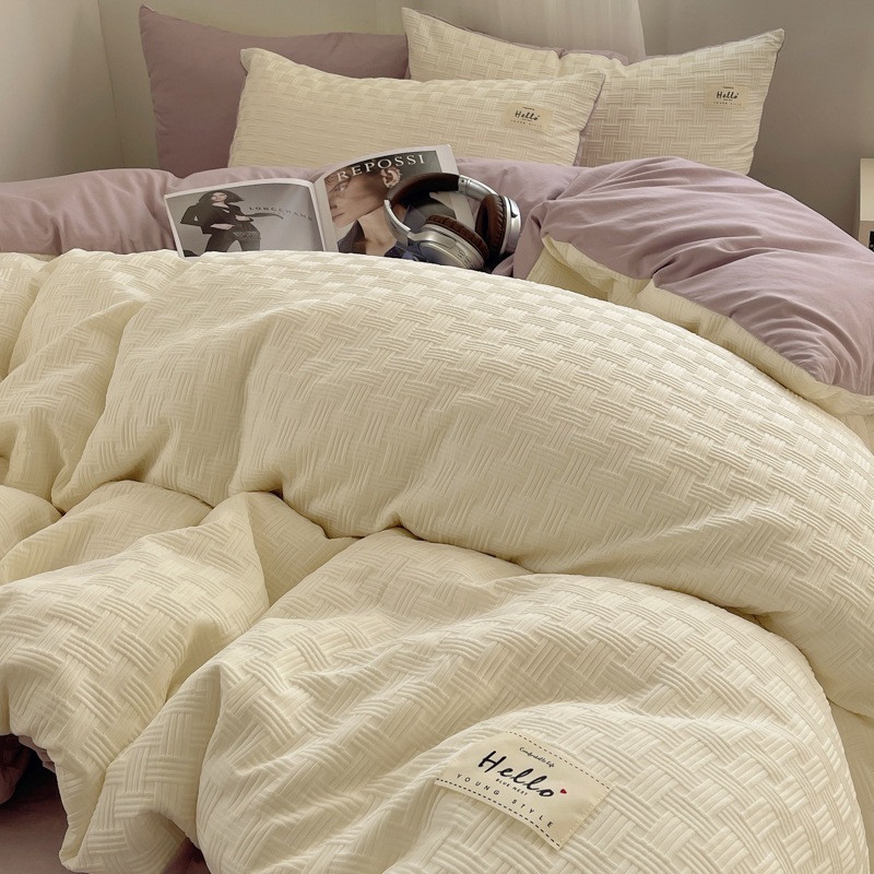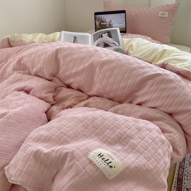 二重ガーゼ水洗綿ベッドに4枚組の発泡糸布団に学生寮シーツベッド笠3枚組