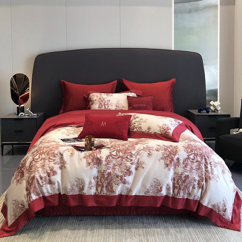 100本の長綿デジタルプリント結婚祝い4点セット全綿結婚大紅布団カバー幅1.8床品