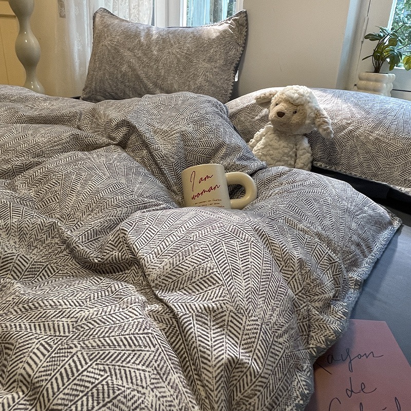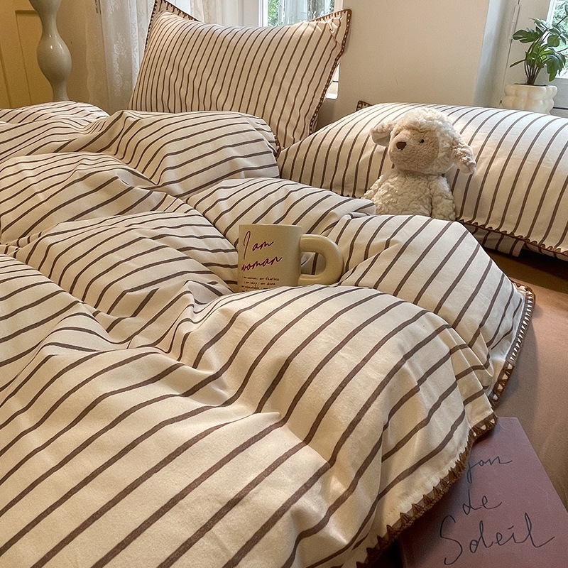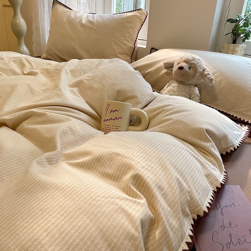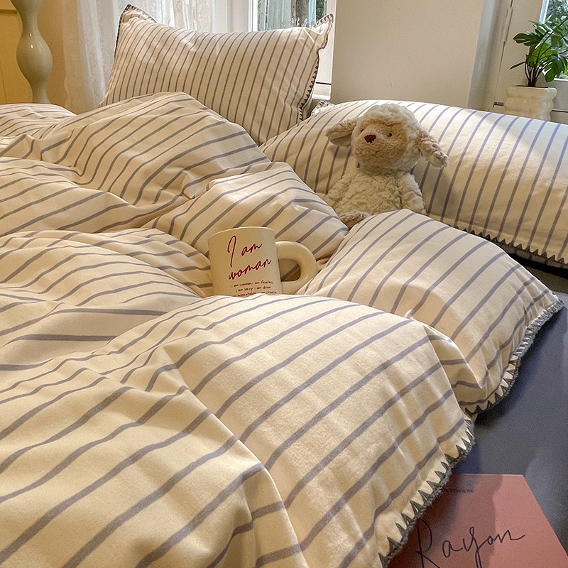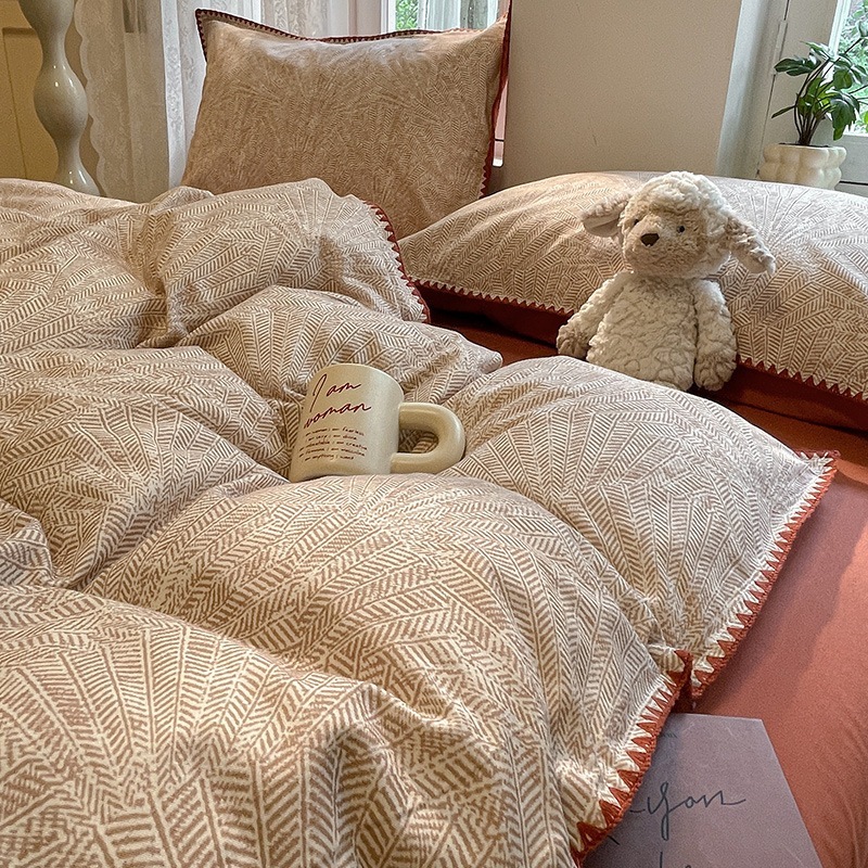 店舗秋冬厚手綿磨き貝殻縁純綿保温布団カバー寝具4点セット