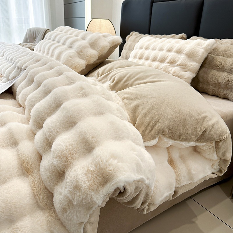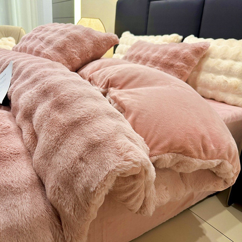 冬の厚手ウサギの毛織物4点セットミルクの毛織物シーツ布団カバー南通サンゴの毛織物の寝具と毛織物の布団カバー