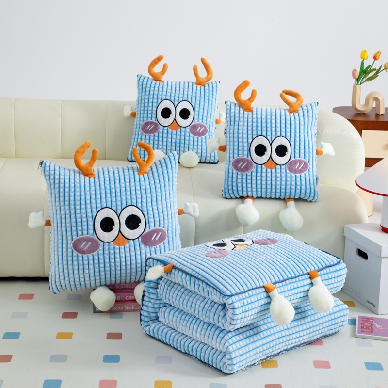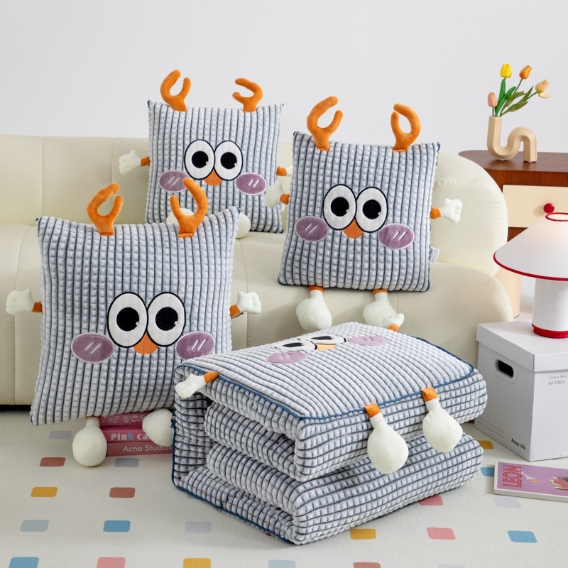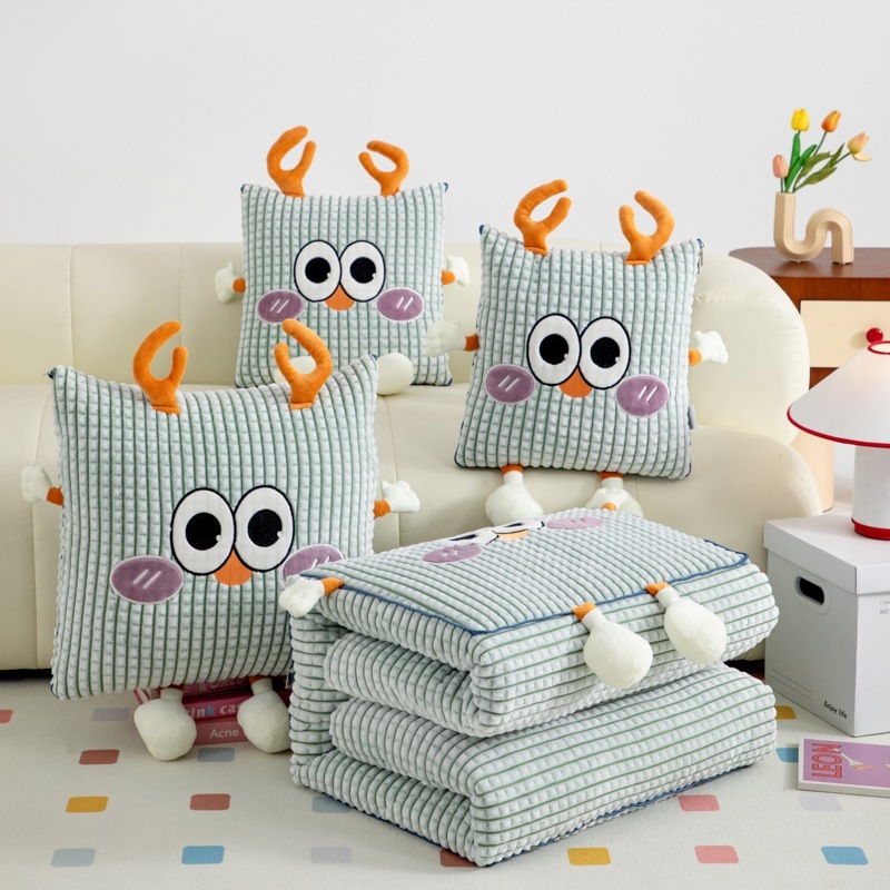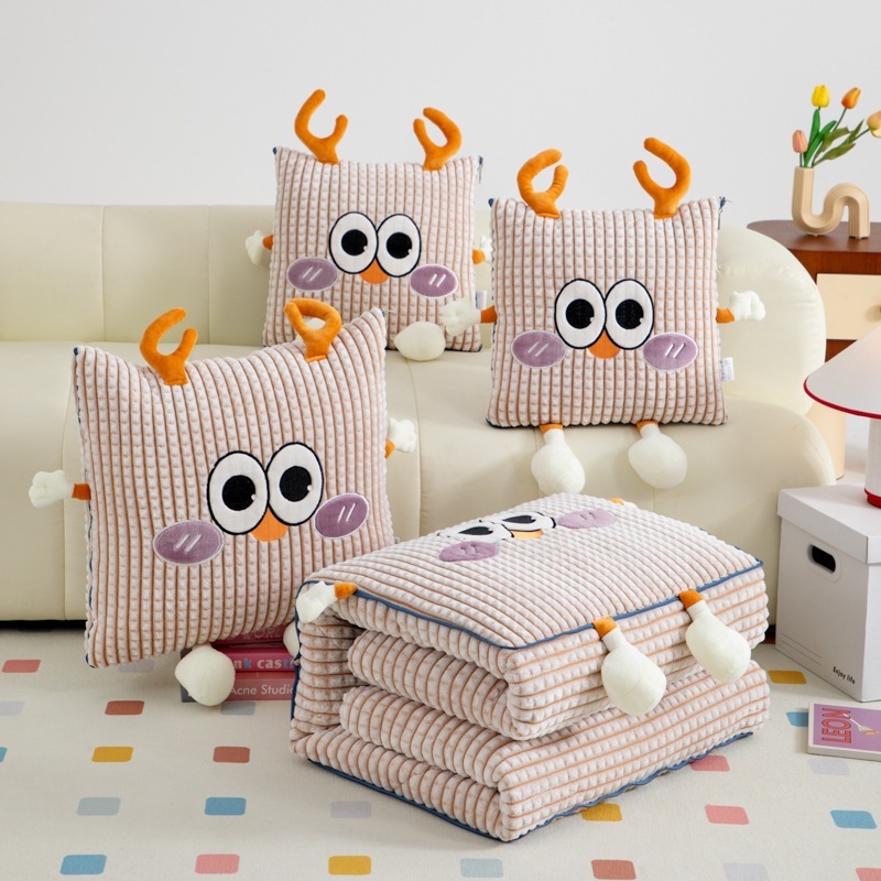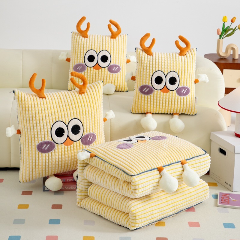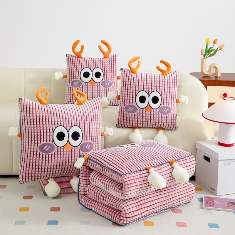 厚手ミルクレーヨン抱き枕布団-かわいい鹿の粉かわいい車用クッション枕お昼寝ブランケット