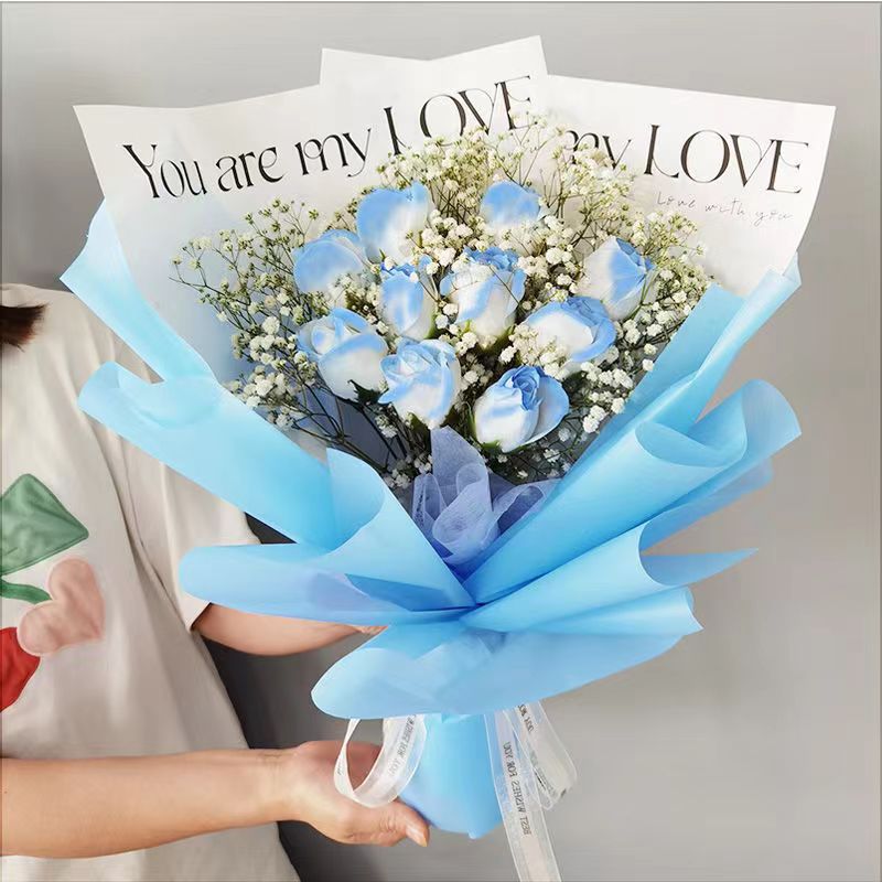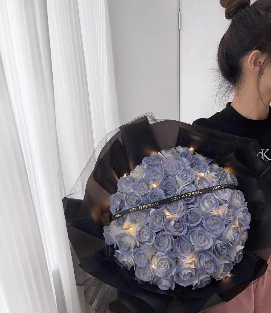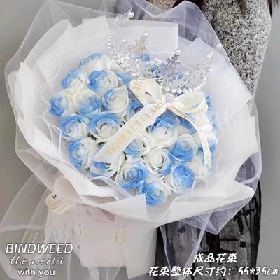 壊れた氷の青いバラのバレンタインデーブーケ99クラスメートやベストフレンドへの休日の誕生日プレゼントのシミュレートされたソープブーケ