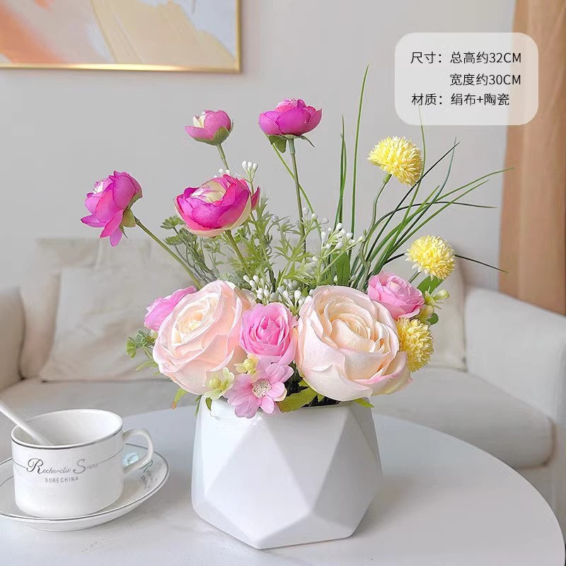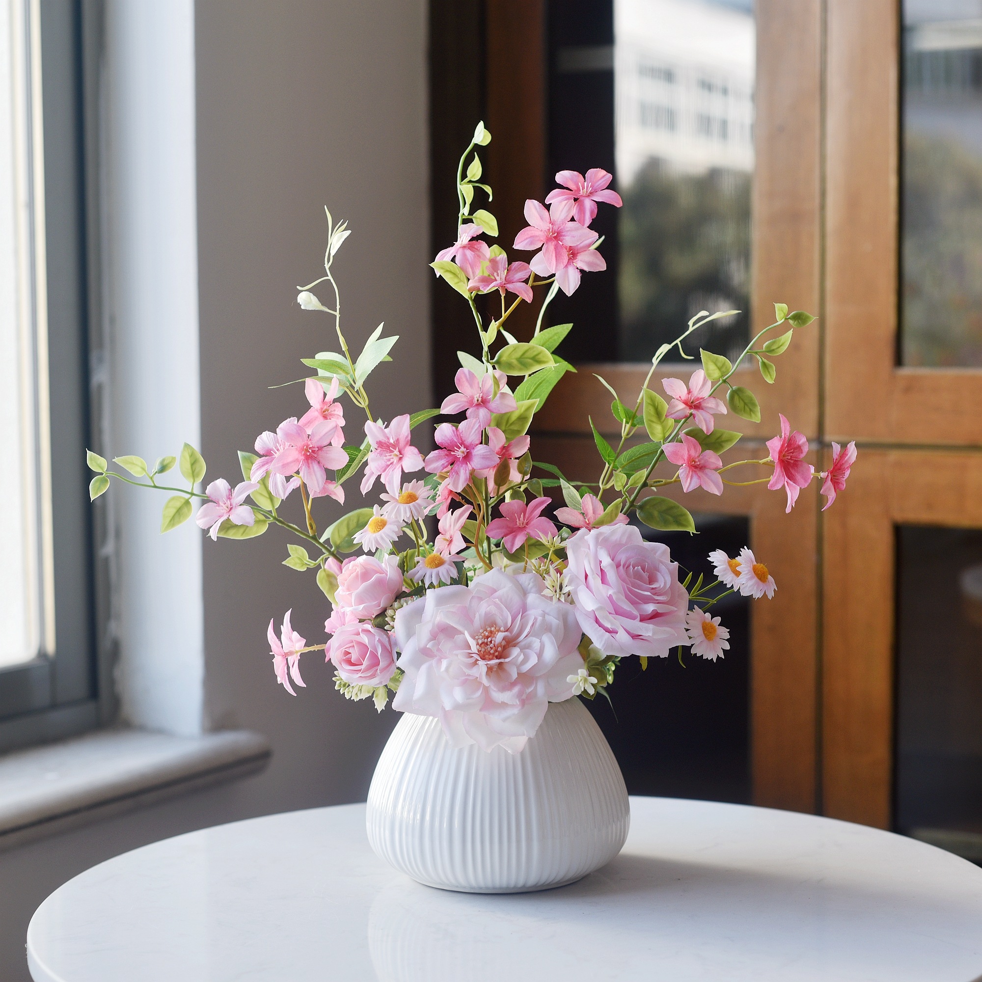 新鮮なピンクのフェイクフェイクリビングフラワー家具家具ダイニングテーブル装飾屋内花柄の飾り