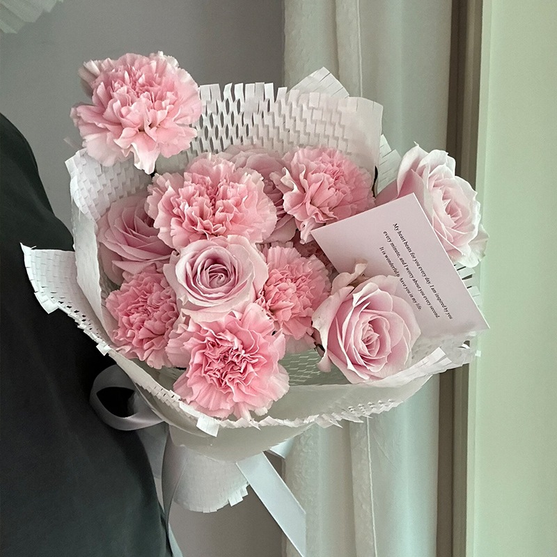 ピンクカーネーションブーケ完成品シミュレートされた花を模倣した花をお母さんに38ギフトを誕生日ギフト記念日ギフト
