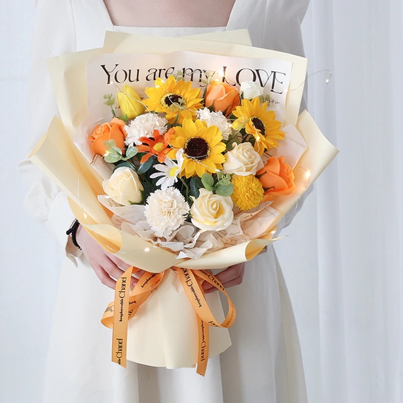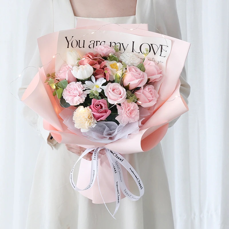 バレンタインデーシミュレーションされた石鹸花ローズヒリの混合ブーケはガールフレンドの誕生日プレゼントを送るために驚きを完全に送ります