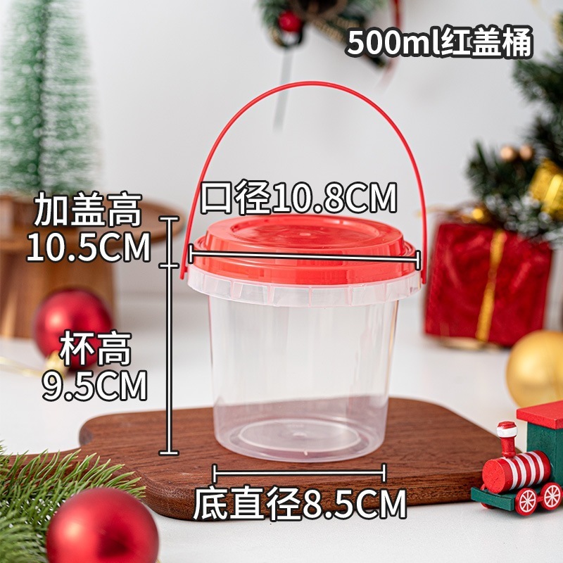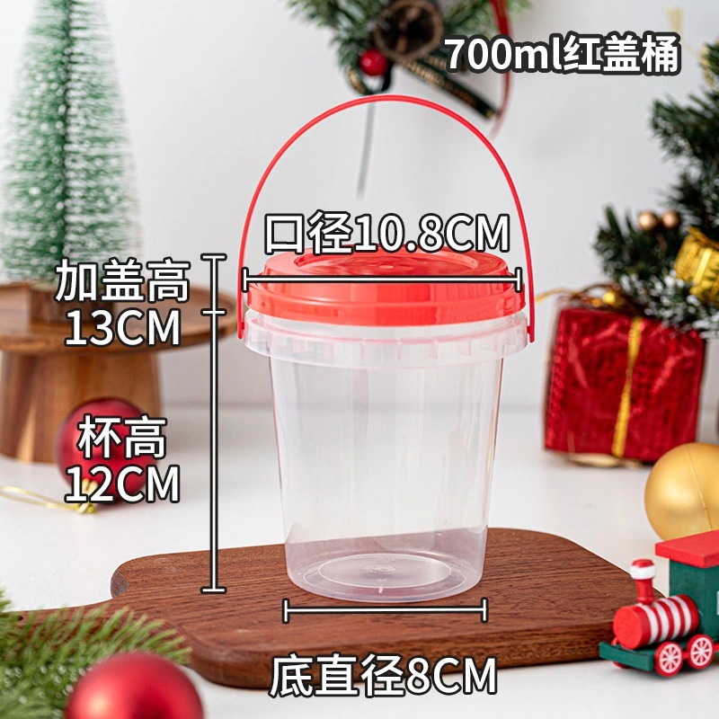 (新品特典)クリスマス ポータブル スナック キャンディ バケツ パフ ヌガー スノーフレーク ペストリー マカロン 包装箱 赤い蓋付き ポータブル バケツ