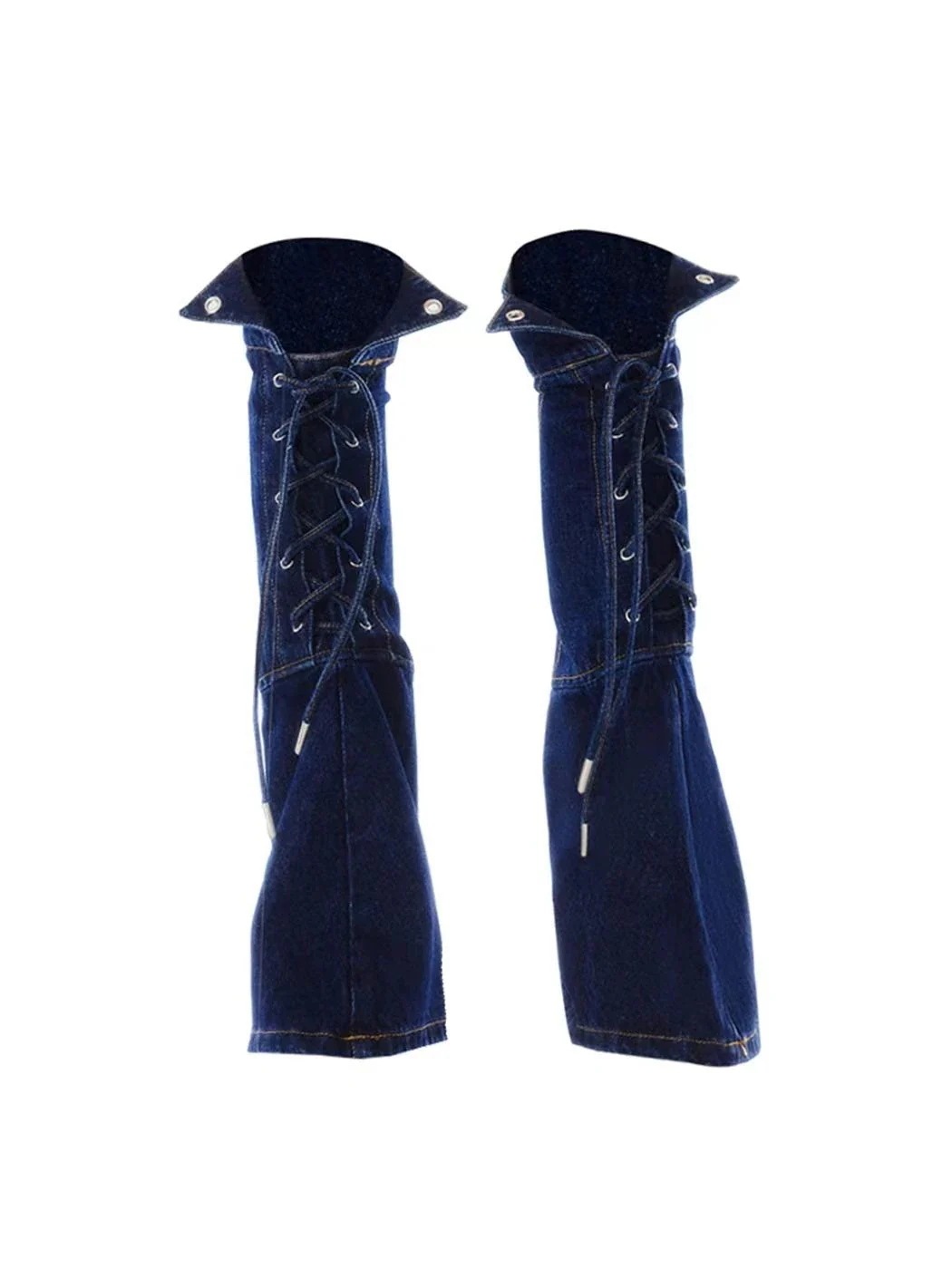 デニムレッグウォーマー 交差バンド フレアー  ロングルーズソックス かっこいい 足カバー ソックス