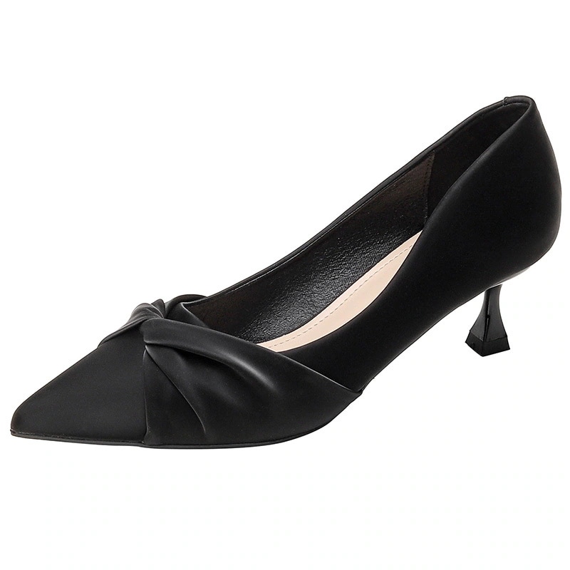 ハイヒールの靴女性新しい浅い口尖った職業靴ソフトレザー罰金ヒールファッションマッチミドルヒールシングルシューズ女性