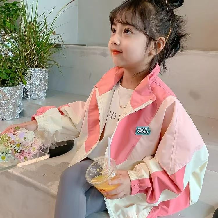 2025春秋新型女児外套児童ジャンパー春秋款小女児洋気パッチワーク運働上衣トップコートキッズ ウィンドブレーカー ブルゾン フードなし ジャケット ジャンパー 子ども 女の子 キッズアウター スプリン