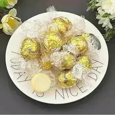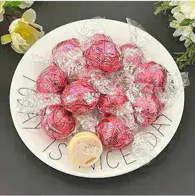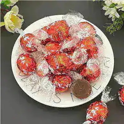 宅配便で届きました。リンドールのチョコは甘さが丁度良いので好きです。ストロベリーの香りもします!