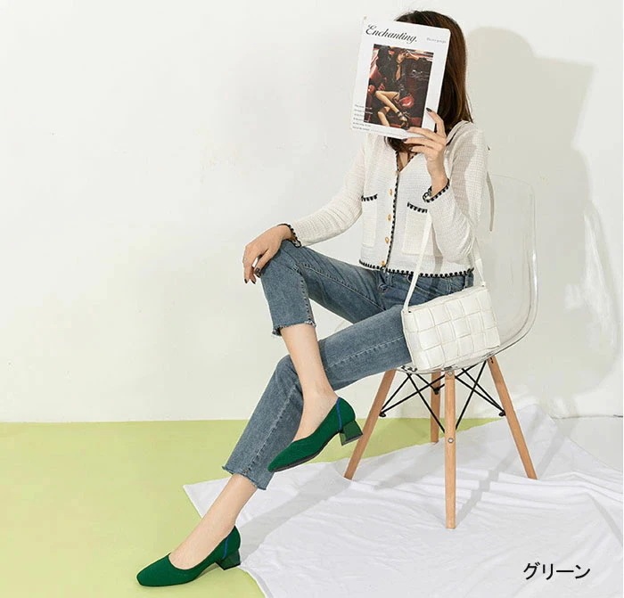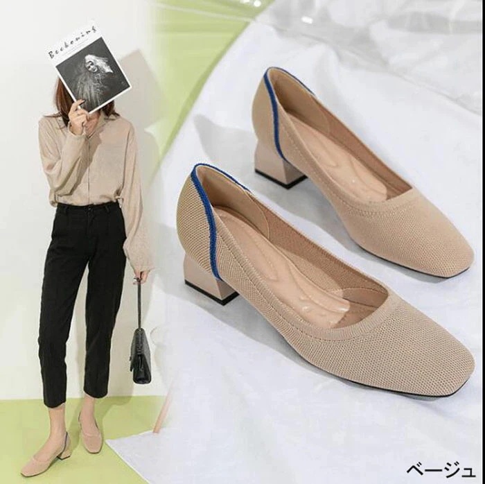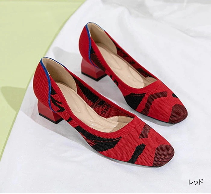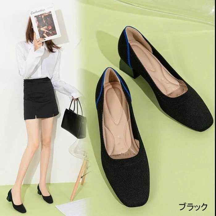 【大人気セール!】パンプス 痛くない 歩きやすい レディース 柔らか ニット素材 デザイン チャンキーヒール スクエアトゥ ローヒール シューズ 通勤 冠婚葬祭 立ち仕事 靴