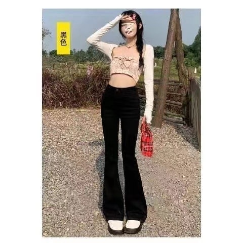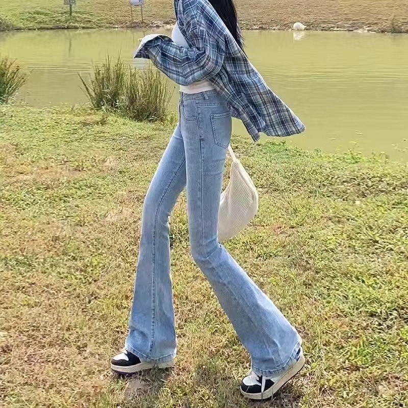 【期間限定】淡色ハイウエストマイクロフレアジーンズレディース2024年秋薄手スリムストレッチフレアパンツ