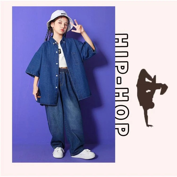 限定時間割引/キッズダンス衣装 ホップ HIPHOP デニムアップ アウター パンツ 子供 男の子 女の子 ジャズダンス ステージ衣装 練習着 演出服