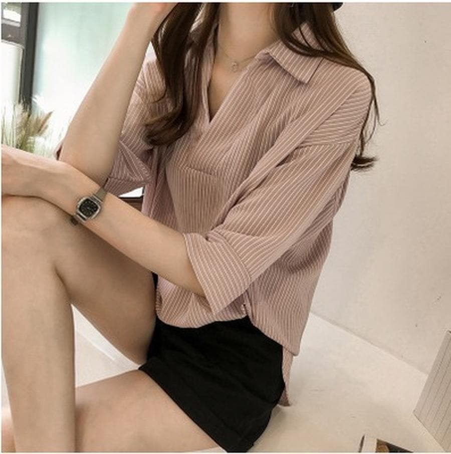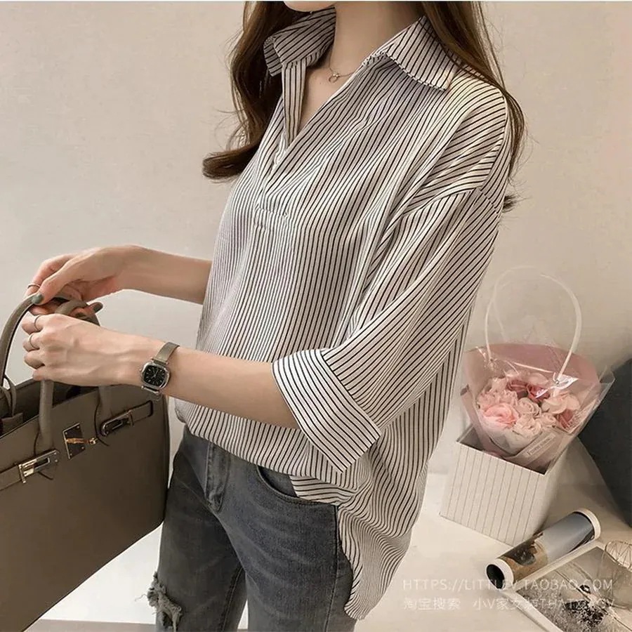 春夏 新商品 韓国ファッション ゆったり 7分袖 着痩せ ストライプ シアーシャツ コーディネート カジュアル 上着