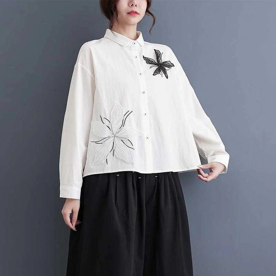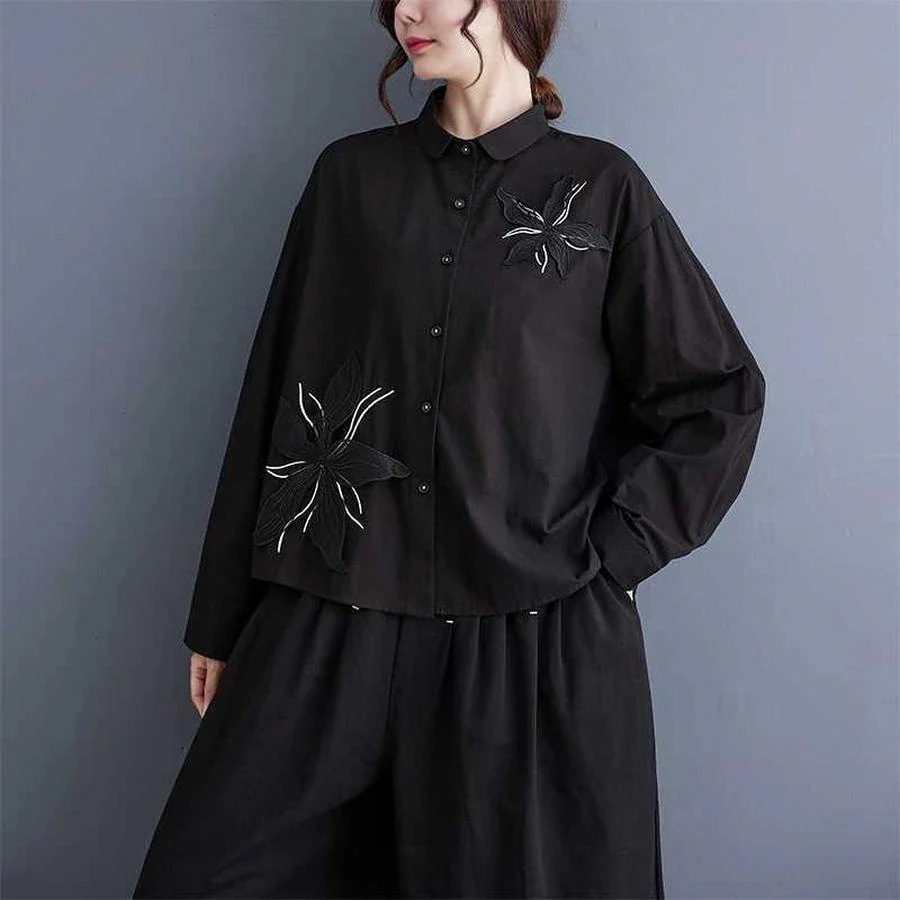 秋 レトロ ブラウス 花柄飾り 中華風 シャツ チャイナ 古風 レディース ブラウス メガ割