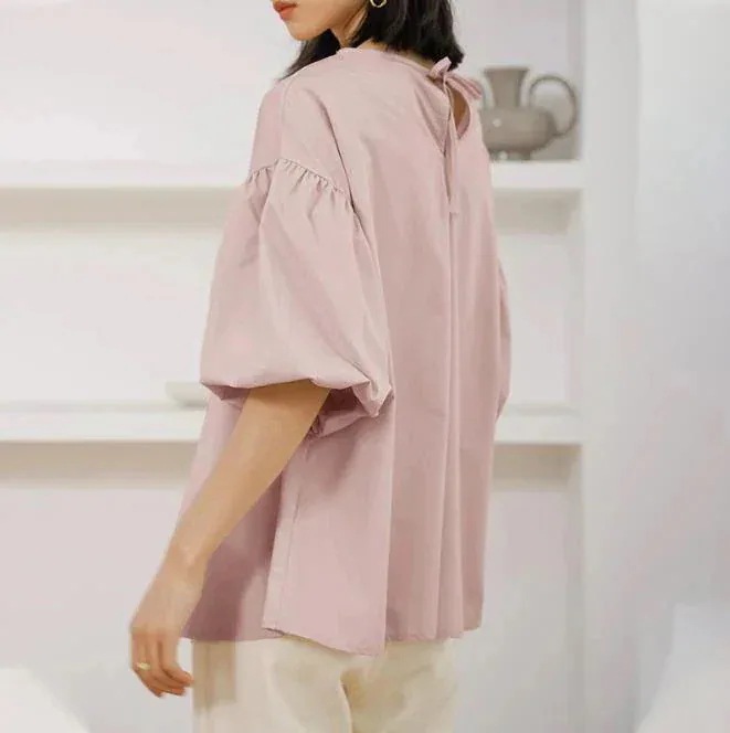 春先取りシャツブラウス レディース 長袖 中袖 半袖シャツ トップス レーストップス バルーン袖 可愛い レディース ブラウス スキッパーネック