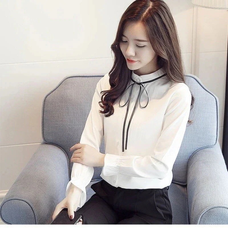 春 新作 ゆったり 立ち襟 蝶結び 長袖 シフォン シャツ オフィス ブラウス レディース スリム見え 気質 トップス