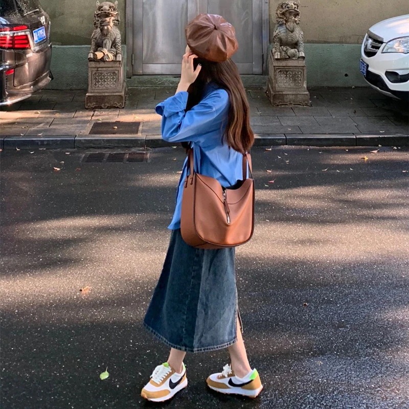 春と秋の女装23年新作早春早秋の塩系気質着回しレトロシャツデニムスカート2枚セット