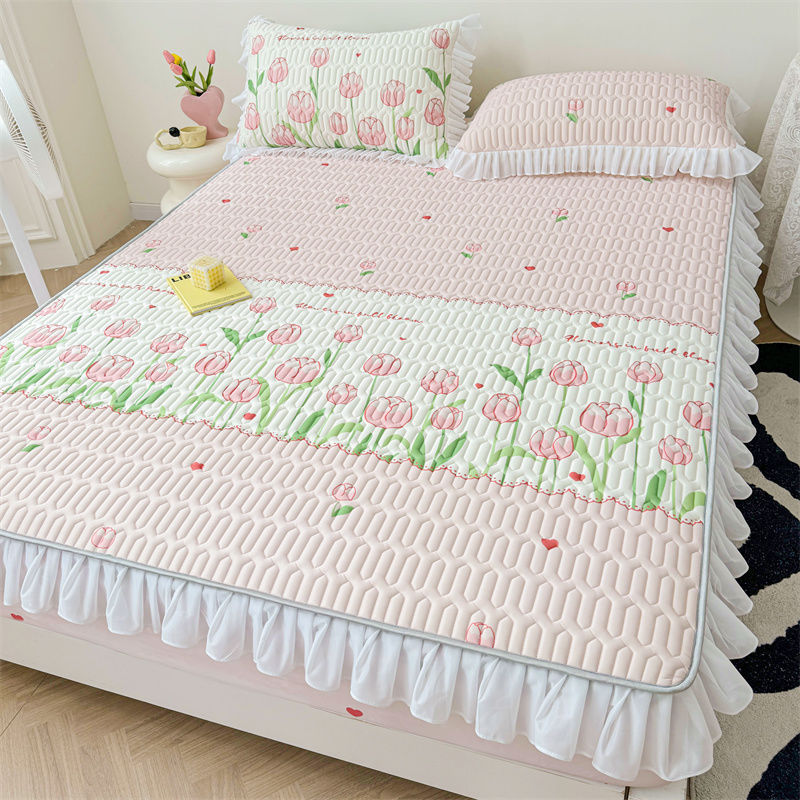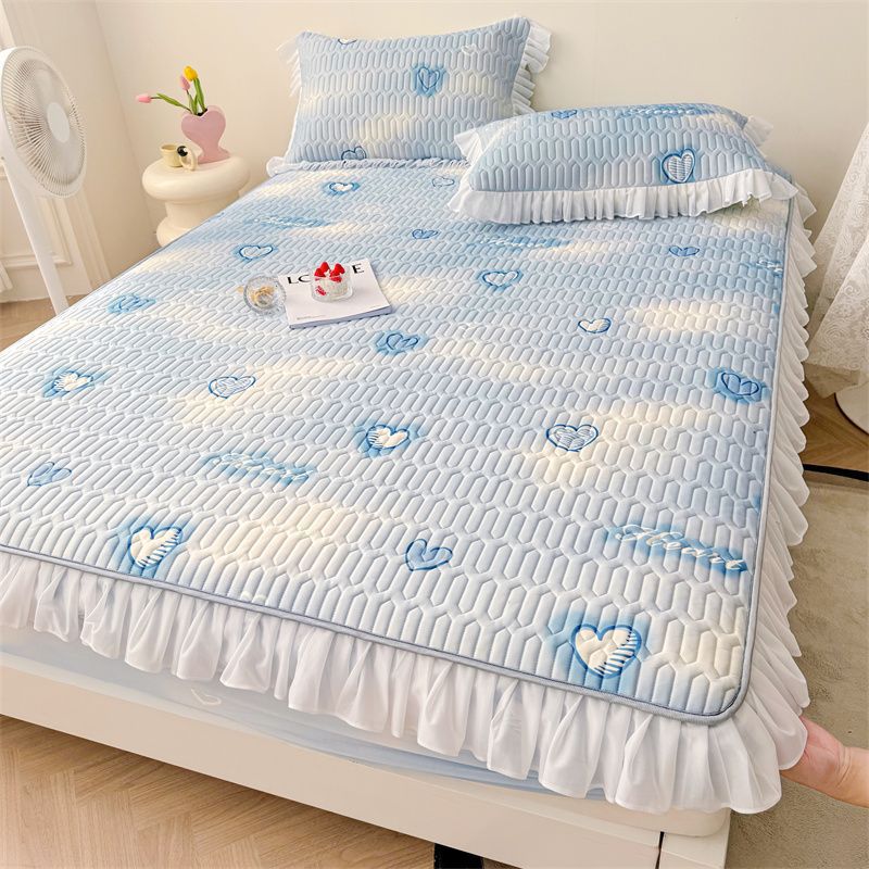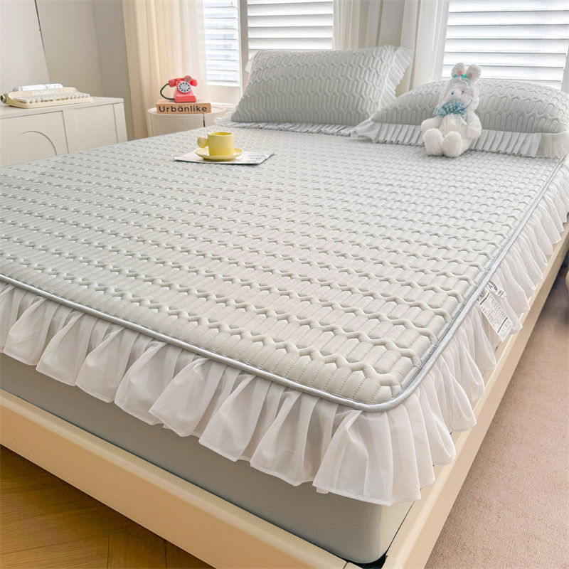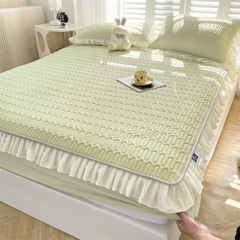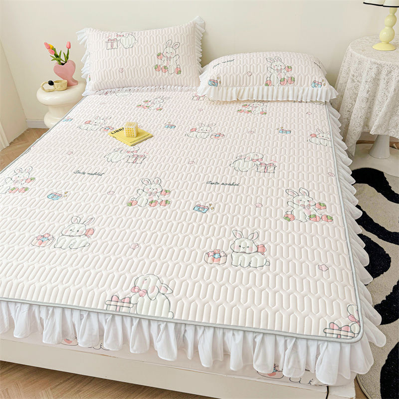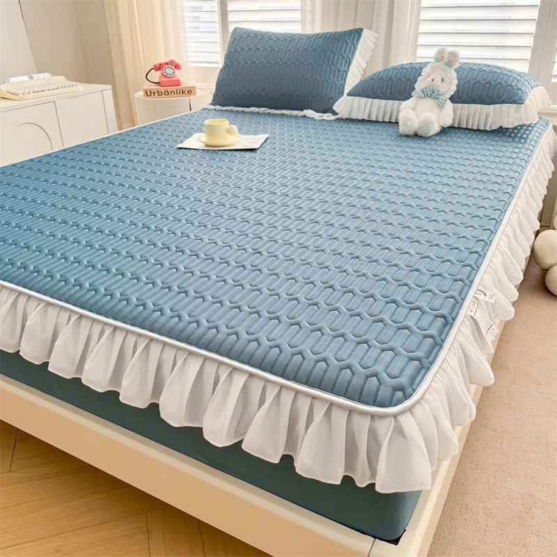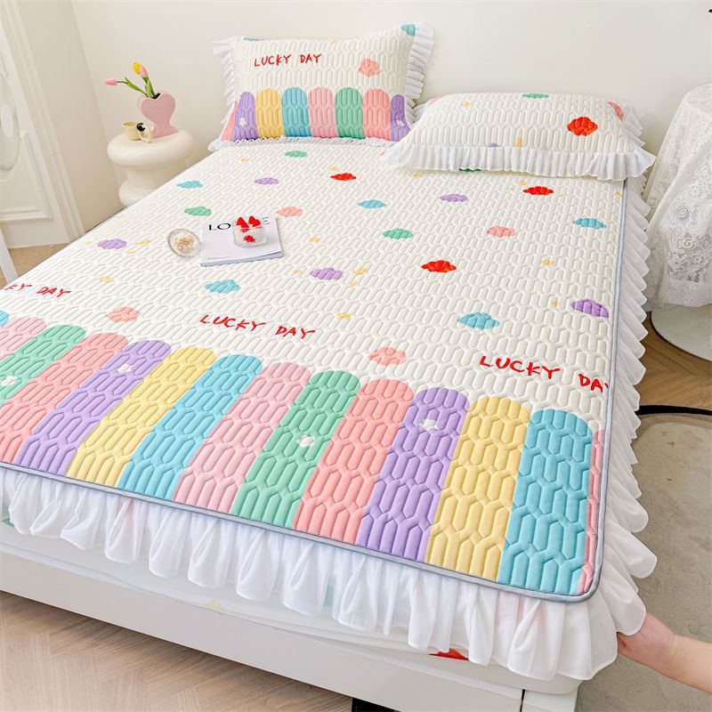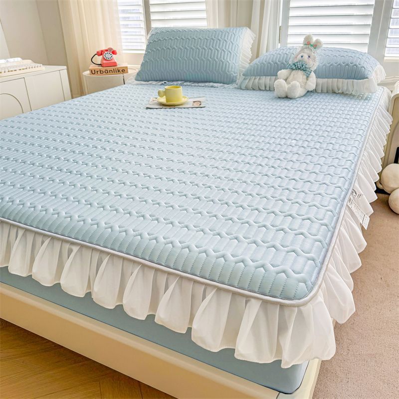 【即納】接触冷感 ボックスシーツ キルティング 天然ラテックス ナノシルク クールシルク マットレスカバー 冷感パッド ベッドシーツ 夏用 かわいいシングル セミダブル ダブル ワイドダブル キング