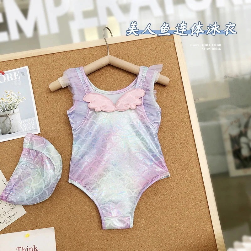 女の子2025夏の新しい子供のかわいい人魚の小さな翼メッシュ姫ワンピース水着
