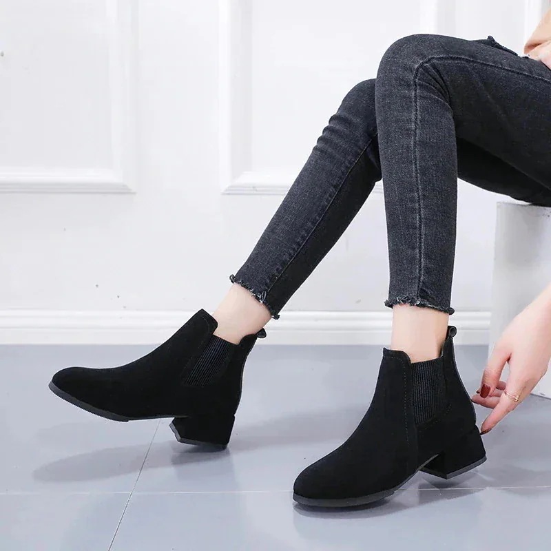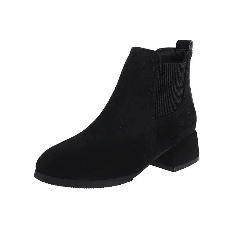 ショートブーツ レディース レザーブーツ ラウンドヘッド スクエアヒール ショート スエード スリッパ ゴム入り ブーツ 韓国ファッション