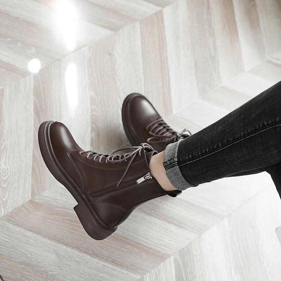 スタイルアップ!ヒールパンプス ローファー ロングブーツが復活!ショートブーツ 英国風ブラウンカレーカラーのマーチンブーツファスナー付き厚底フラットショートブーツ