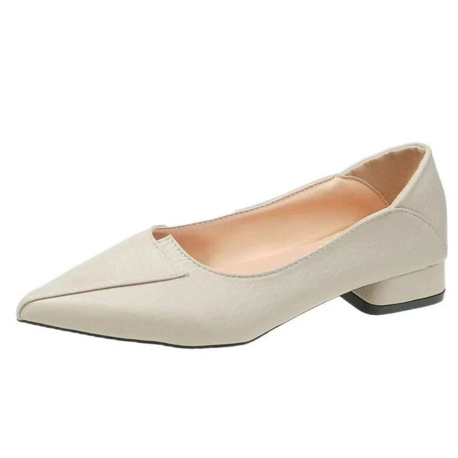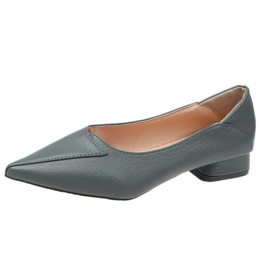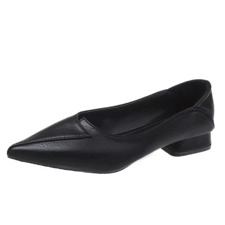 ミッドヒールシングルシューズ ソフトレザービーンズシューズ ポインテッドヒールフラットシューズ ワークシューズ