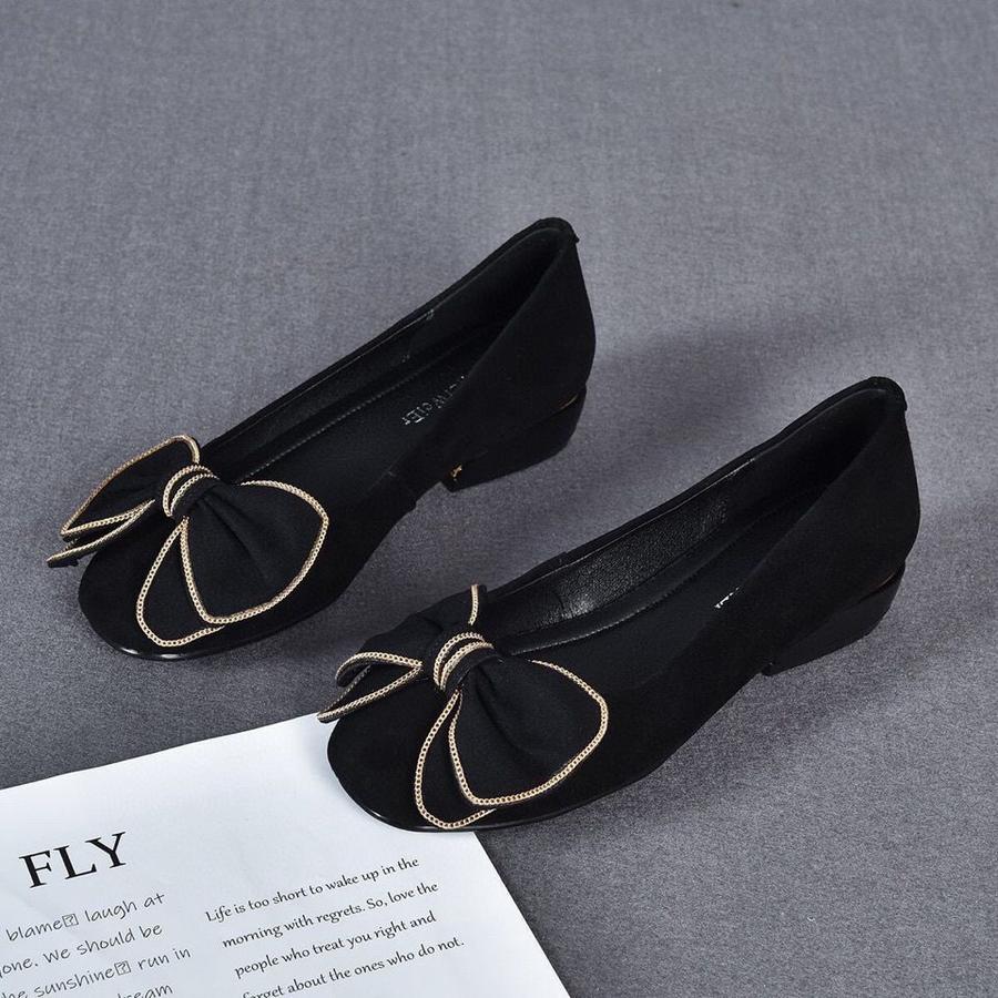 パンプス ローヒールかかと革の靴で柔らかい革厚い単一の靴女性新しい夏の浅い口フラットな女性の靴の多目的な曇らされた柔らかい表面