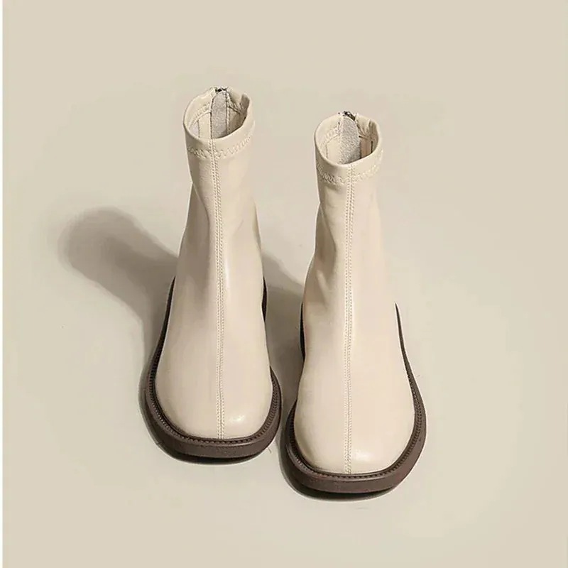 秋冬ファッション レディースショートブーツ フラットマーティンブーツ チェルシースリムブーツ英倫風スクエアトゥホワイトブーツ ブーツ 靴